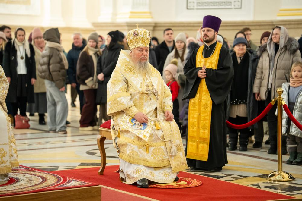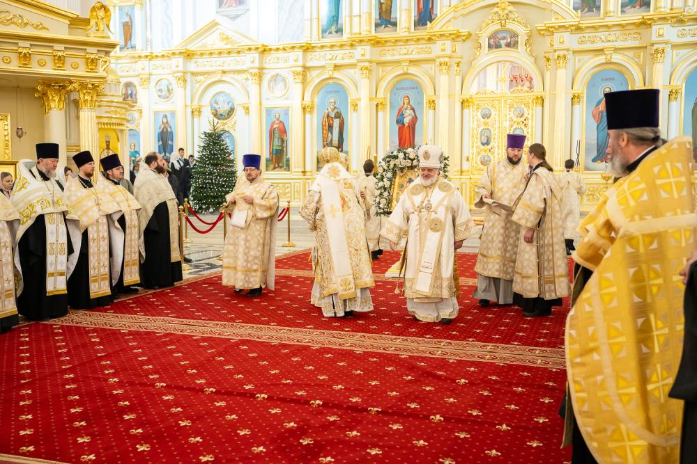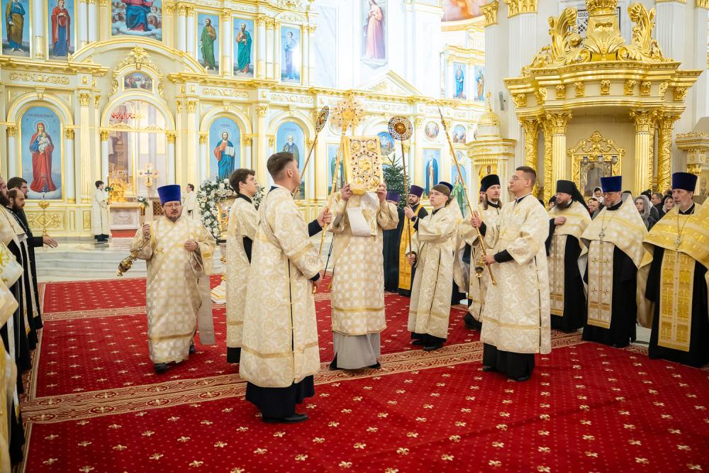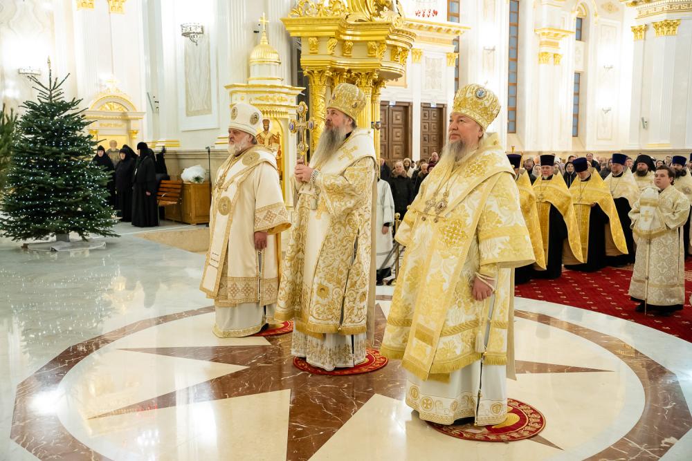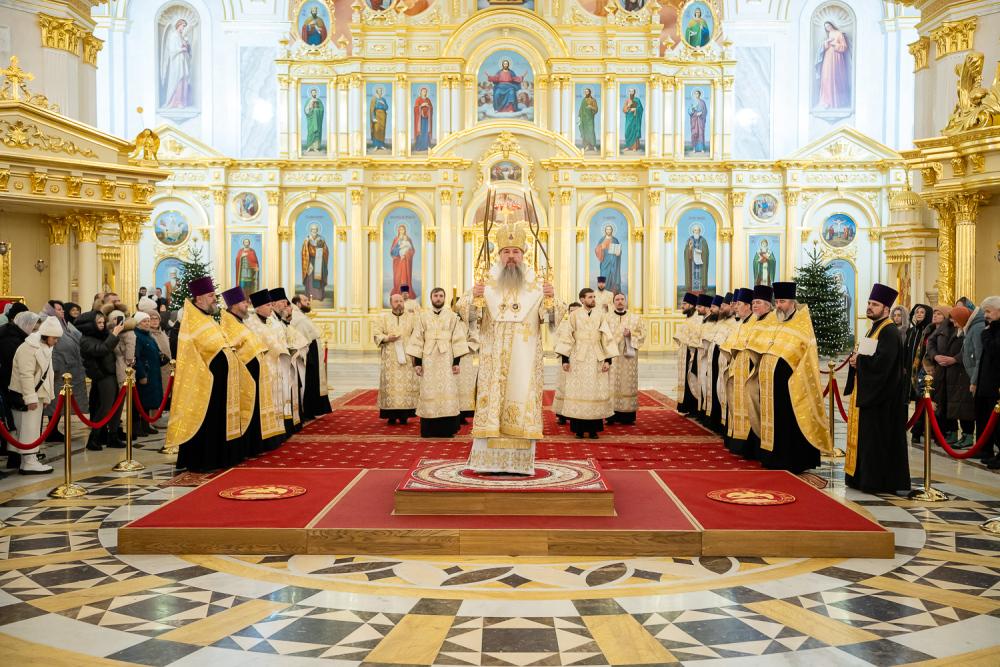 Вечером 7 января 2026 года, в праздник Рождества Господа Бога и Спаса нашего Иисуса Христа, митрополит Пензенский и Нижнеломовский Серафим, епископ Кузнецкий и Никольский Назарий, епископ Сердобский и Спасский Митрофан совершили великую вечерню в Спасском кафедральном соборе города Пензы.
