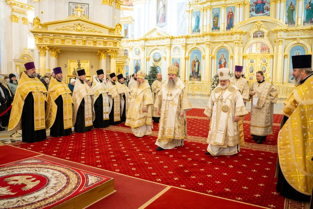 «От всей полноты Кузнецкой епархии поздравляю Вас, владыка митрополит, с этим великим торжеством, — сказал Преосвященный владыка Назарий. – Праздник Рождества Христова многогранен, о нем можно рассуждать бесконечно долго. Но для меня лично и для многих верующих самое главное его содержание заключено в словах Священного Писания: «Ибо так возлюбил Бог мир, что отдал Сына Своего Единородного, дабы всякий верующий в Него не погиб, но имел жизнь вечную» (Ин. 3:16).