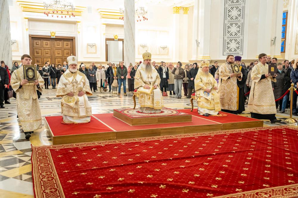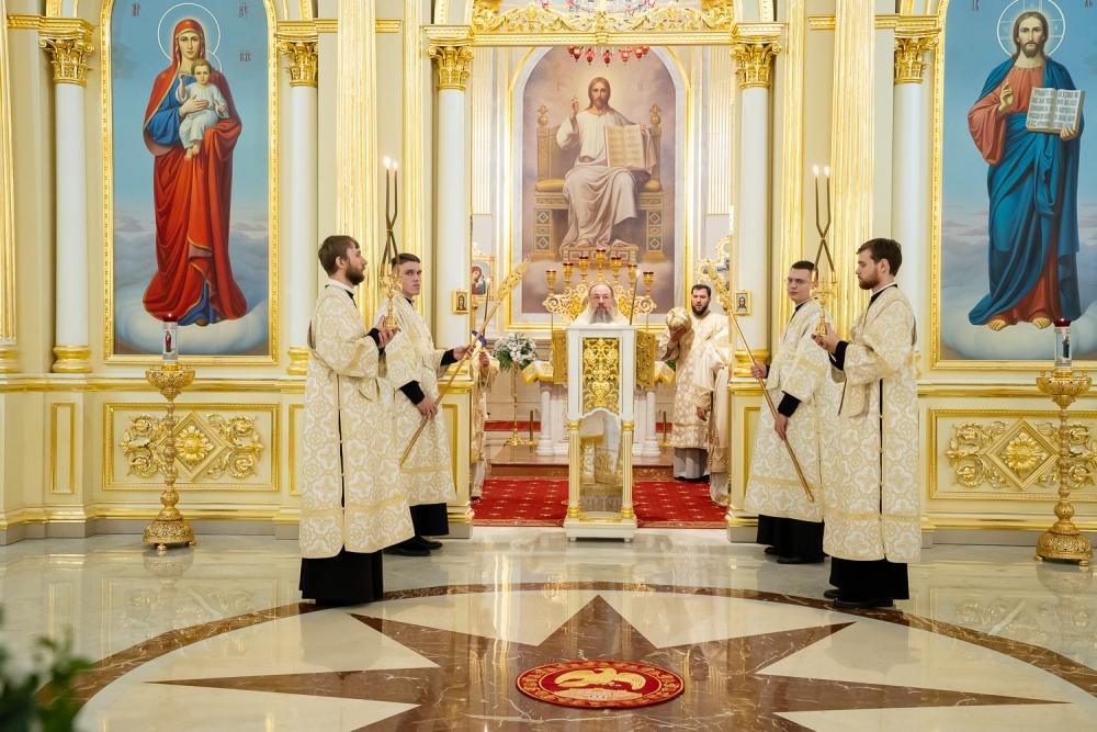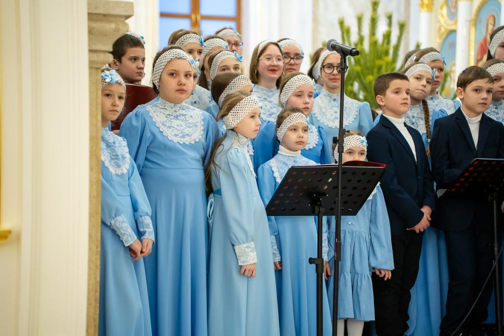 Богослужебные песнопения исполнили хор Спасского кафедрального собора под управлением регента Ольги Горшеневой и Архиерейский детский хор под управлением регента Марины Никитиной.