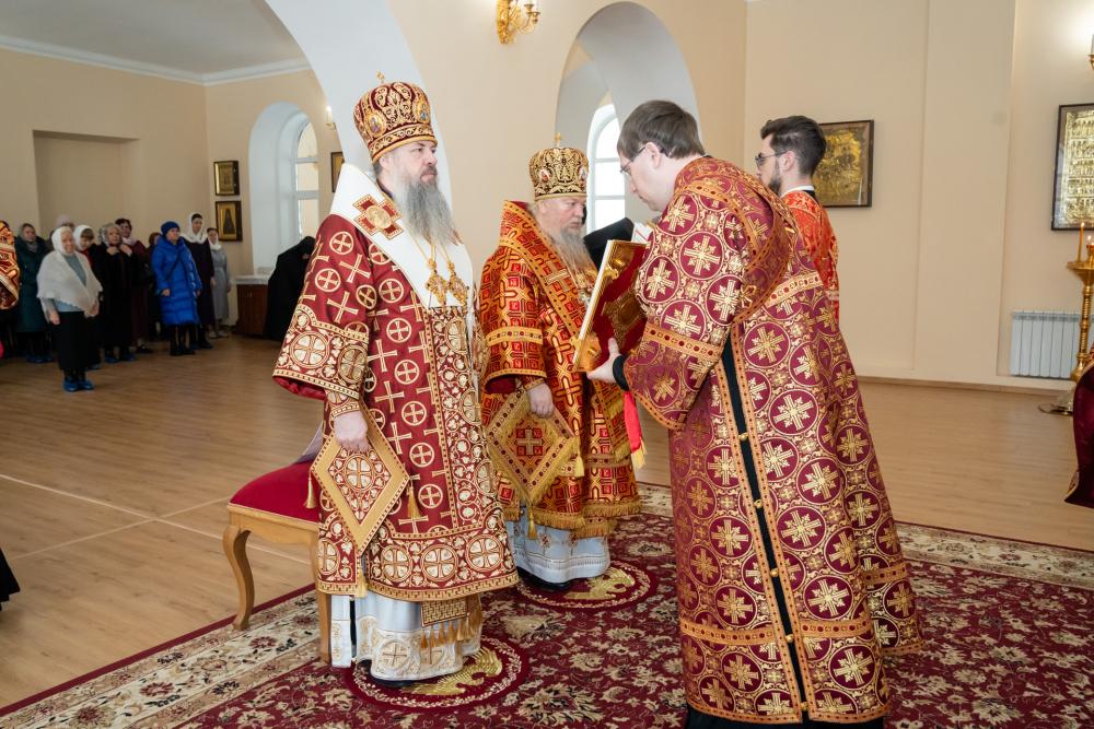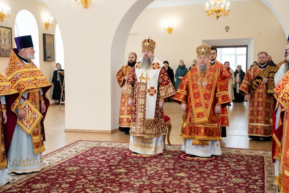 За богослужением молились настоятельница Пензенского Троицкого монастыря игумения Александра (Макова) и настоятельница Наровчатского Троице-Сканова монастыря игумения Иннокентия (Татаркина).