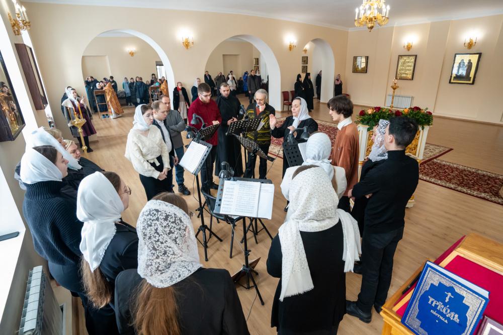 Песнопения литургии исполнил хор Спасского кафедрального собора г. Пензы под управлением регента Ольги Горшеневой.