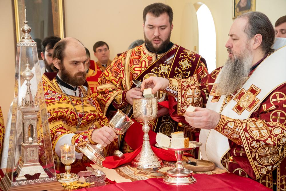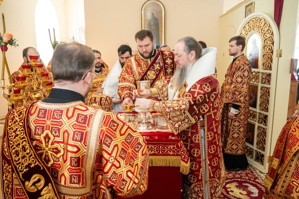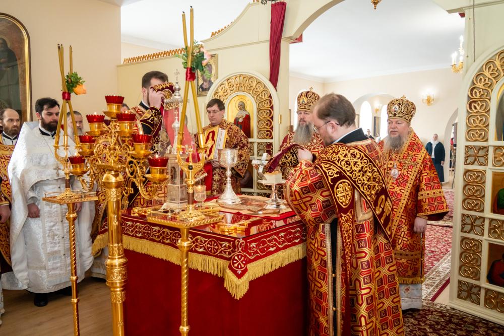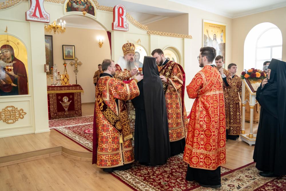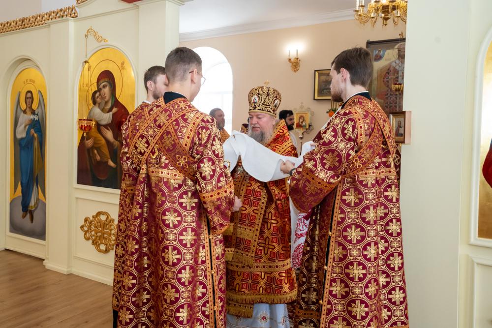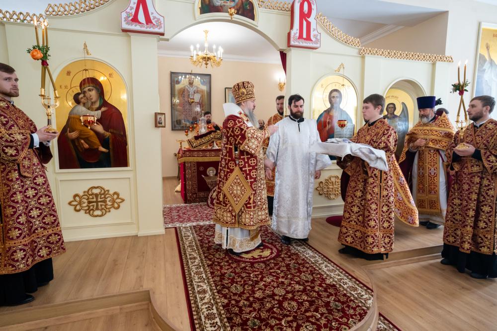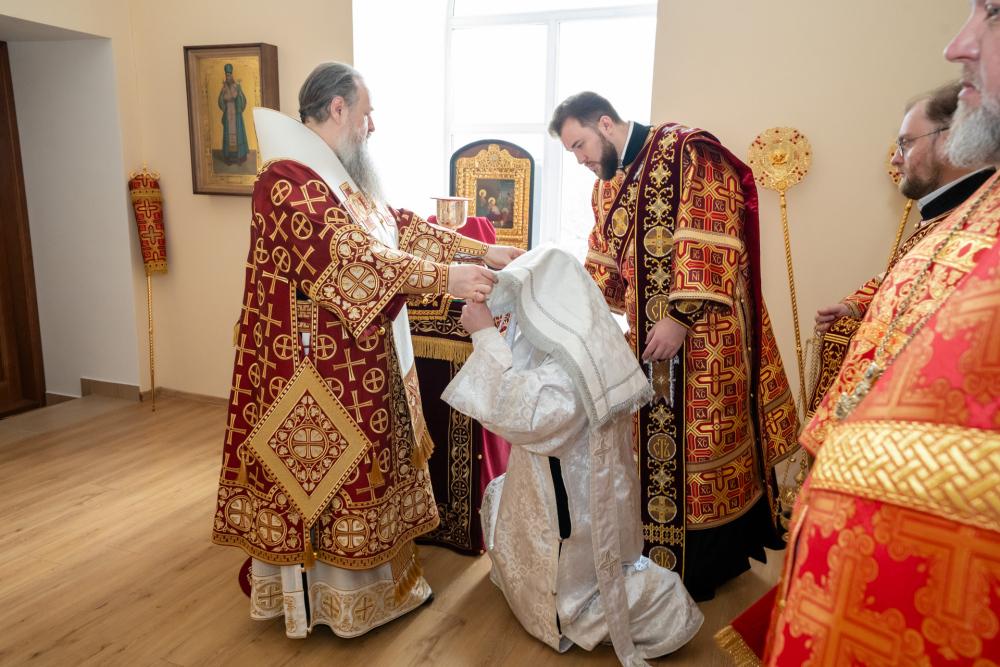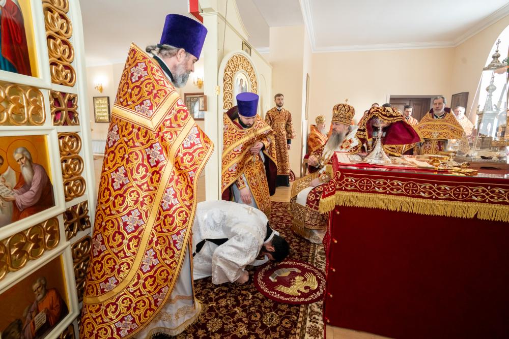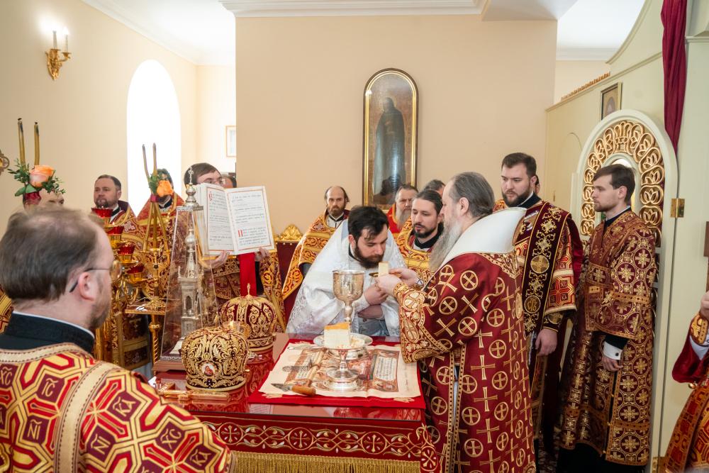 За богослужением была совершена хиротония диакона Кирилла Мамонтова во пресвитера.
