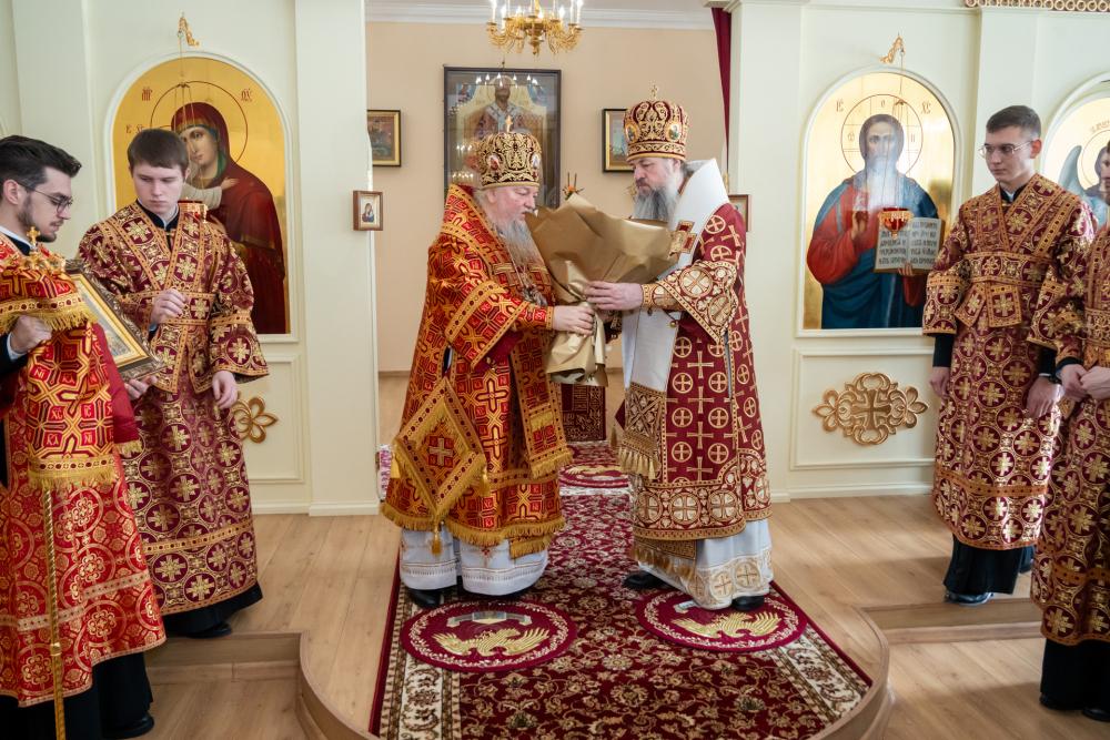 По окончании богослужения клирики и верующие преподнесли Высокопреосвященному владыке памятные подарки.