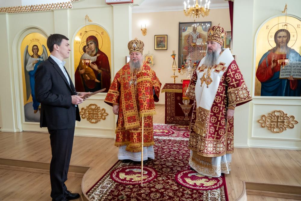 Полномочный представитель губернатора Пензенской области Павел Маслов вручил митрополиту Серафиму приветственный адрес губернатора Пензенской области Олега Мельниченко.