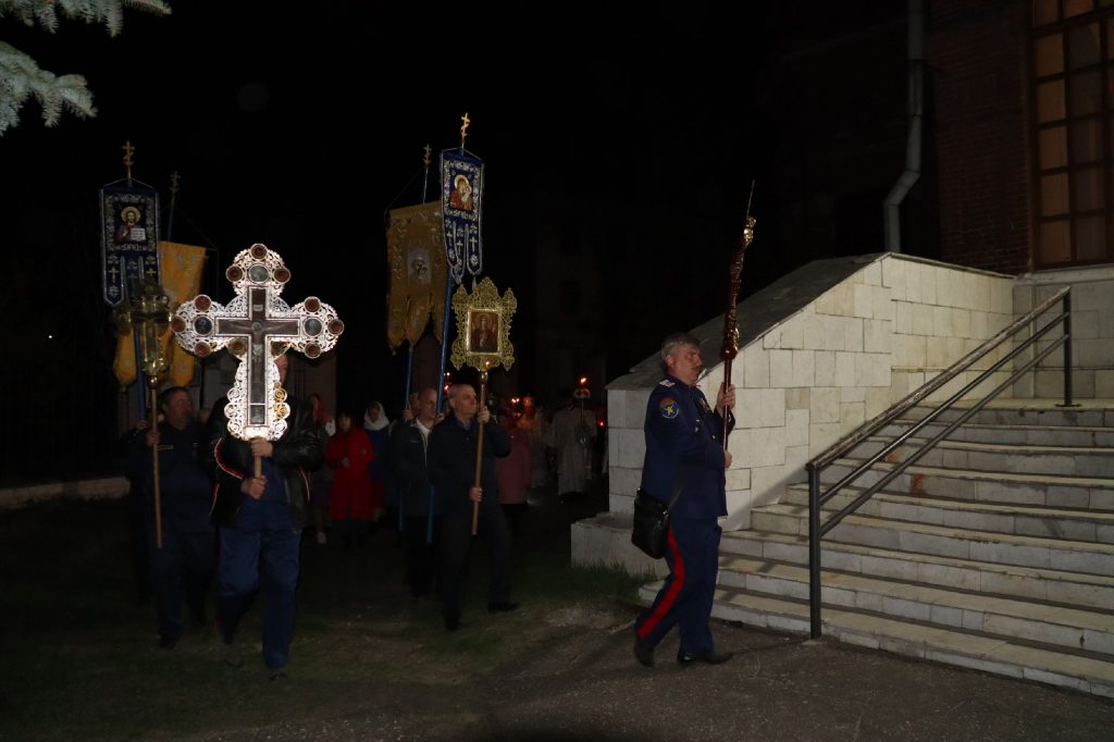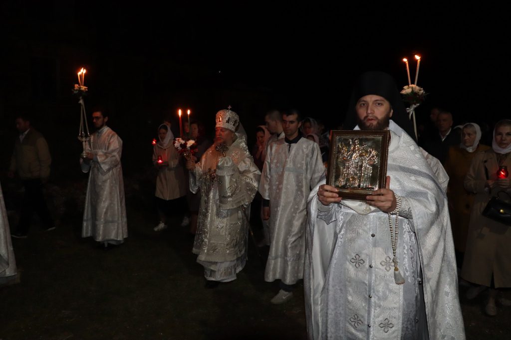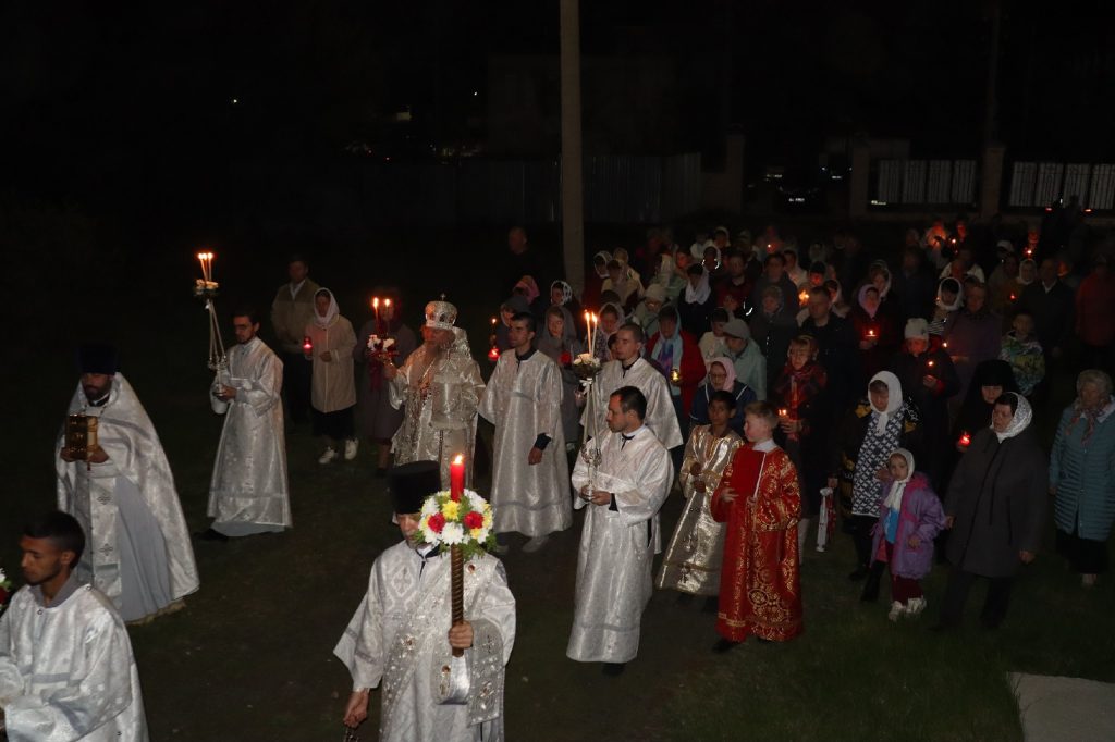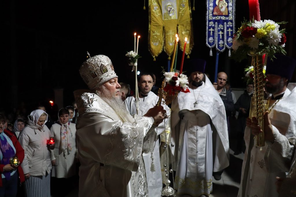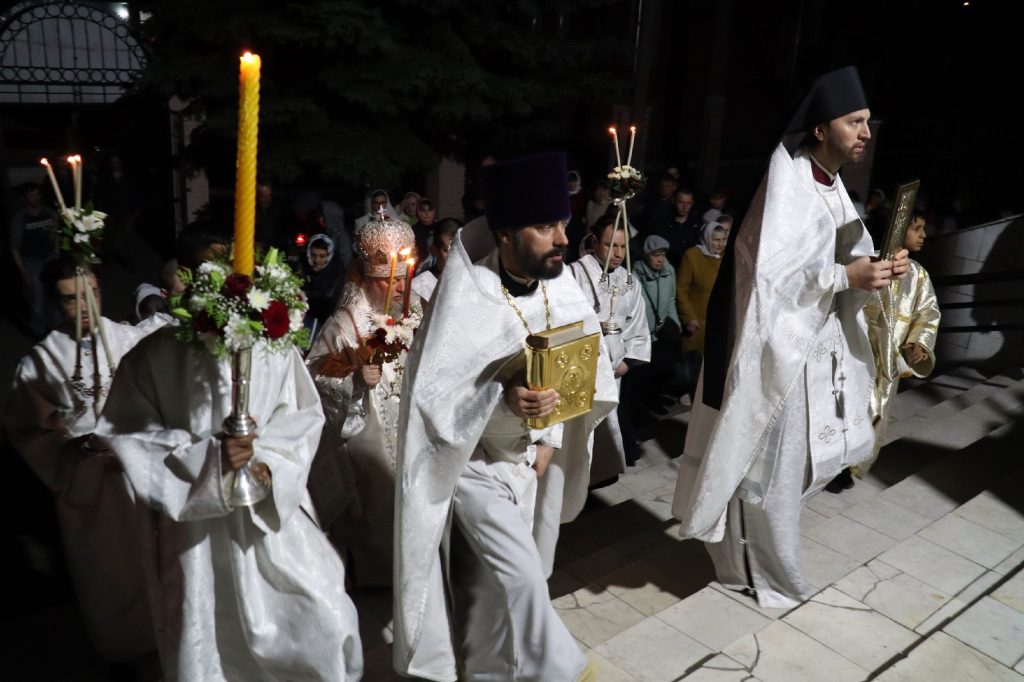 Под пение стихиры «Воскресение Твое, Христе Спасе» был совершен крестный ход вокруг кафедрального собора Архангела Михаила.