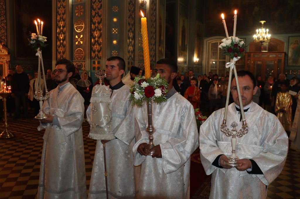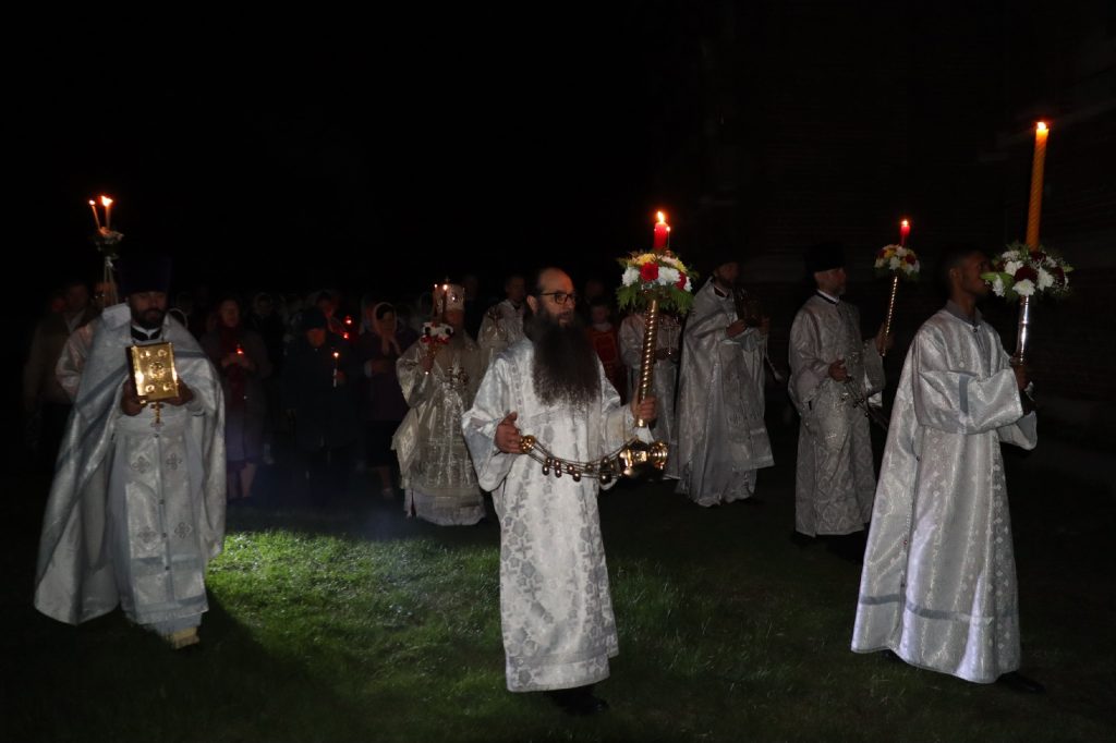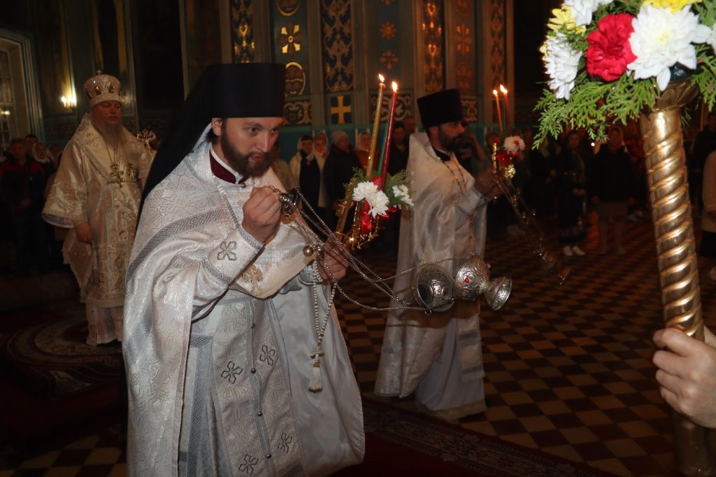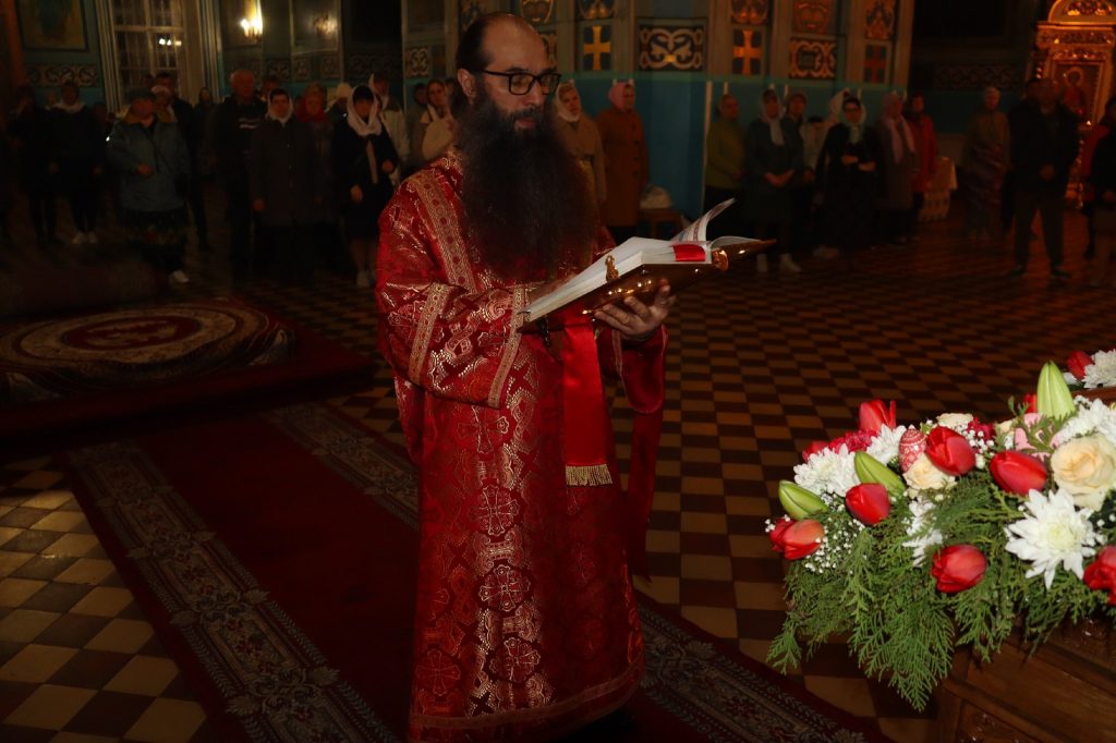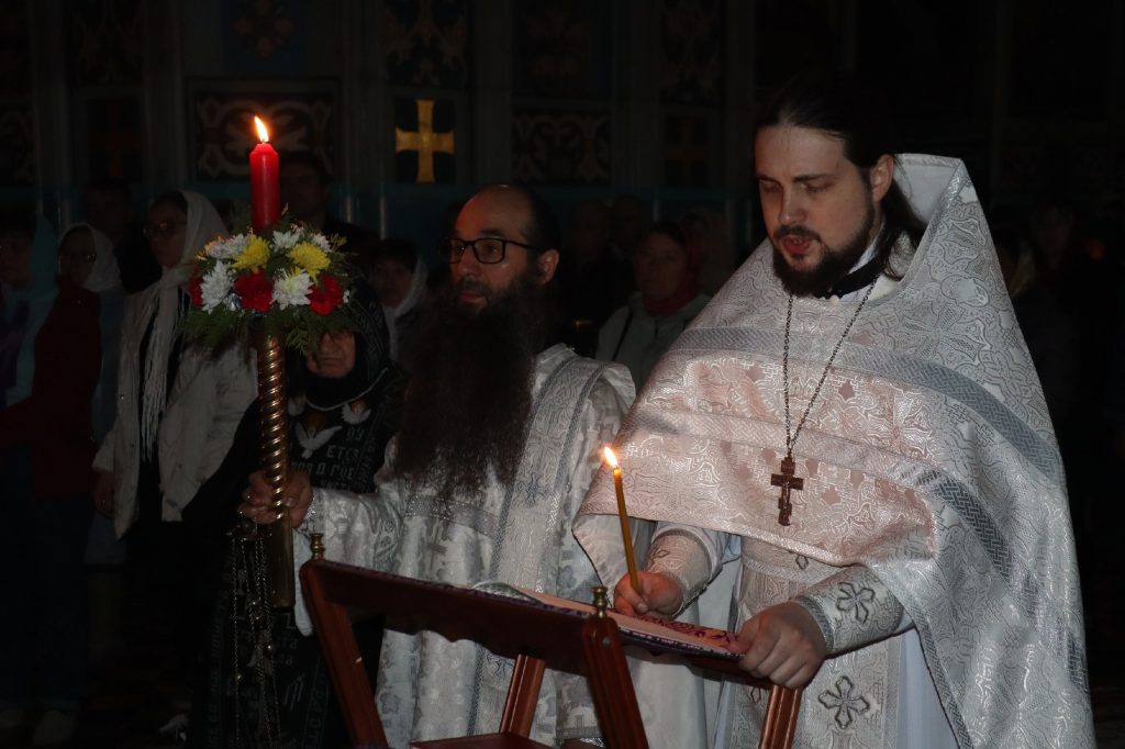За Пасхальной заутреней было прочитано Слово огласительное святителя Иоанна Златоуста на Святую Пасху.