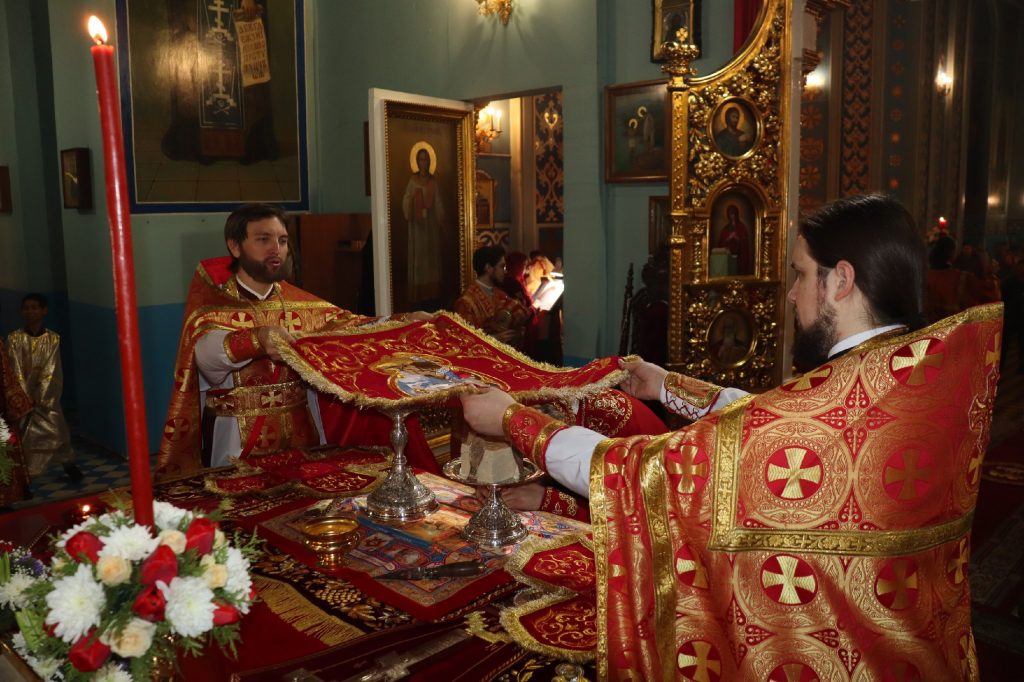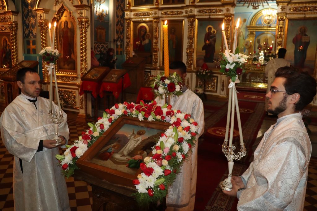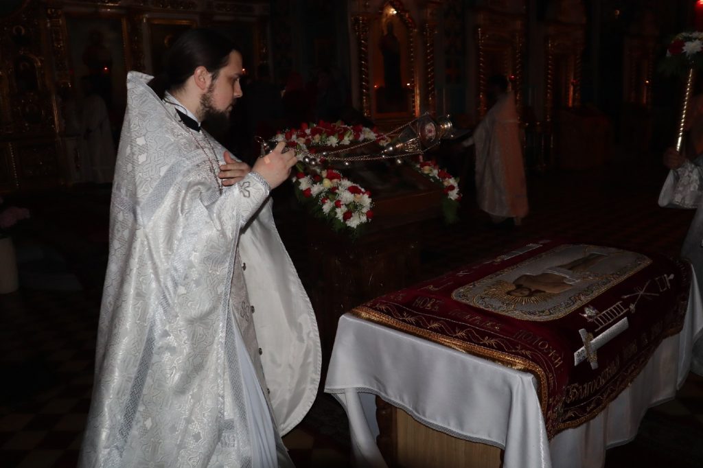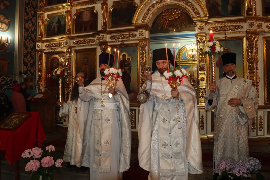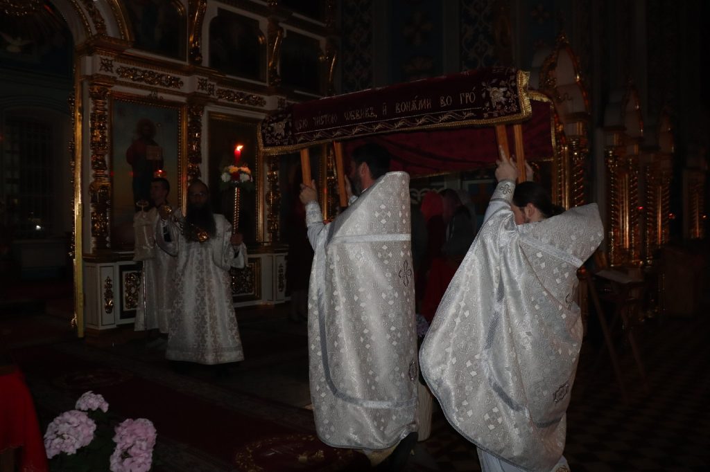 За Пасхальной заутреней было прочитано Слово огласительное святителя Иоанна Златоуста на Святую Пасху.