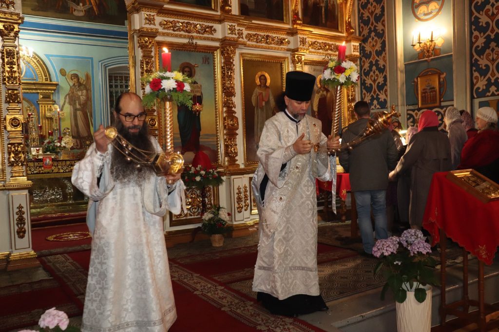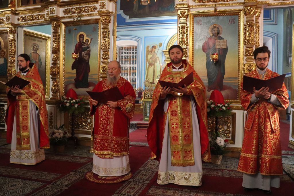 Его Преосвященству сослужили: иеромонах Амвросий (Макаров), врио. секретаря Епархиального Управления; ключарь кафедрального собора Архангела Михаила г.Сердобска, епархиальный древлехранитель иерей Роман Турецких; клирик собора и руководитель епархиального отдела религиозного образования и катехизации иерей Александр Федин; иеродиакон Иннокентий (Ганин), диакон Владимир Эрекайкин.