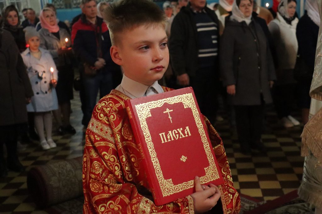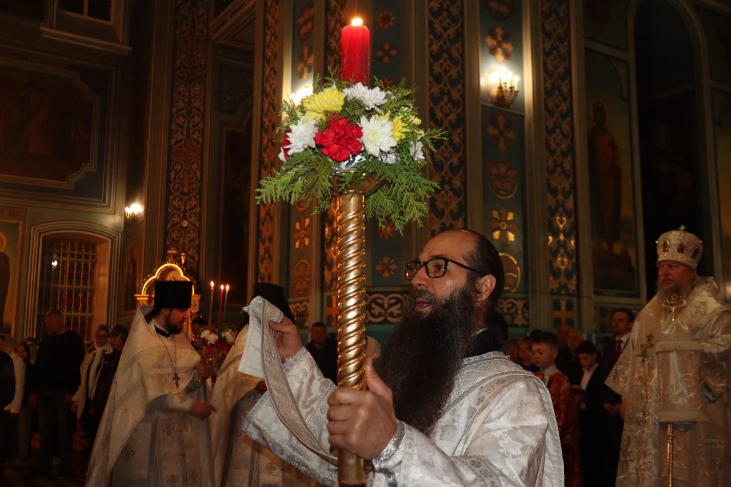 Пасхальное Евангелие (Ин. 1:1-17) было прочитано на еврейском, греческом, латинском, русском, церковно-славянском языках.