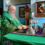 Завершая богослужение, правящий архипастырь поздравил собравшихся в храме с празднованием Входа Господня в Иерусалим и обратился к верующим со словом проповеди.