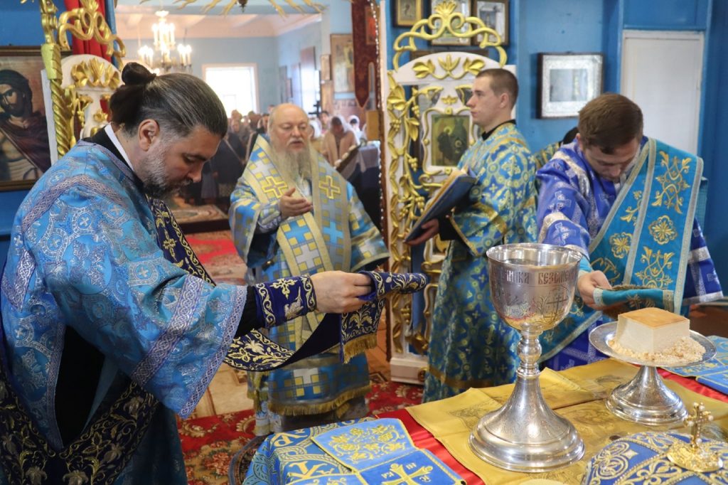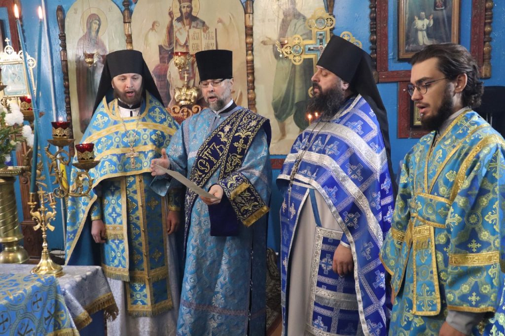 Его Преосвященству сослужили: иеромонах Амвросий (Макаров), врио. секретаря Епархиального Управления; благочинный Колышлейского округа, настоятель церкви игумен Кронид (Петров); клирик кафедрального собора Архангела Михаила г. Сердобска иеродиакон Иннокентий (Ганин); клирик храма Рождества Христова с. Трескино Колышлейского района диакон Виталий Зинич, клирики Сердобского благочиния диакон Владимир Эрекайкин и диакон Михаил Клопов.