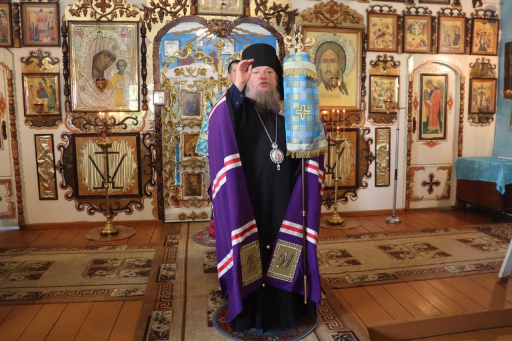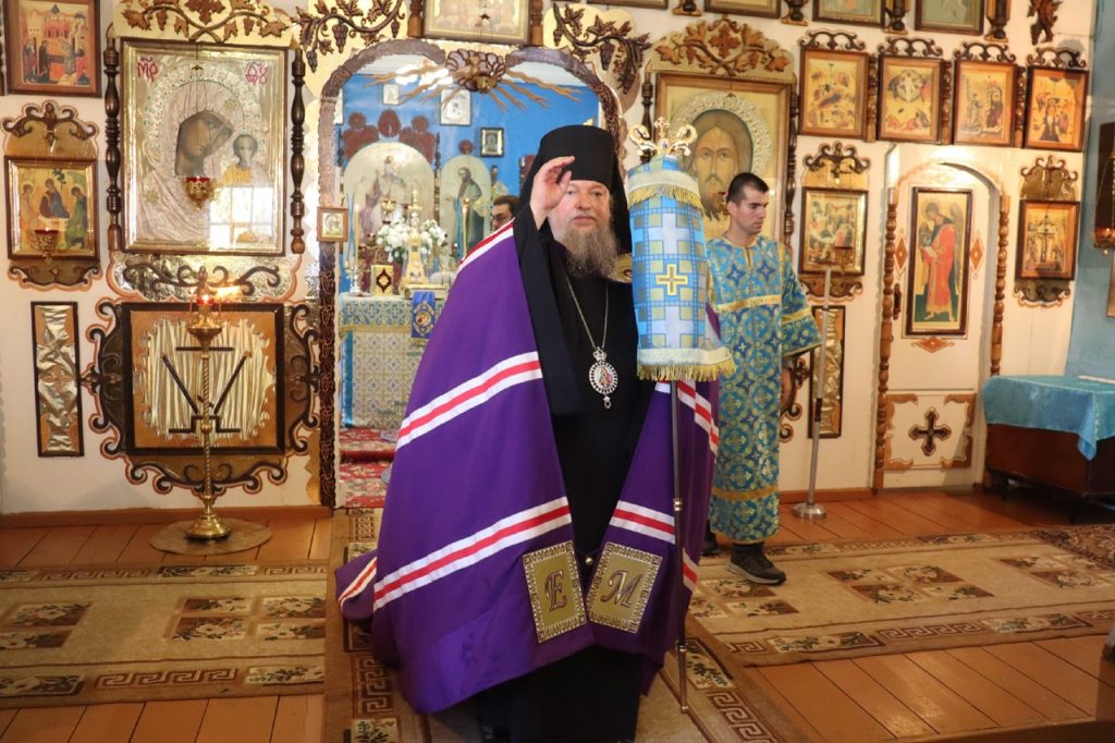 Со словами благодарности за визит и совместную молитву к правящему архипастырю обратился благочинный Колышлейского округа, настоятель церкви игумен Кронид (Петров).