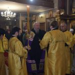 В завершение богослужения настоятель храма протоиерей Георгий Степанов приветствовал правящего архипастыря и поблагодарил его за совместную молитву в день престольного праздника.