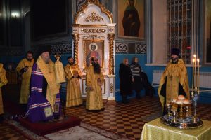 Его Преосвященству сослужили: иеромонах Амвросий (Макаров), врио. секретаря Епархиального Управления; настоятель церкви свт. Николая Чудотворца с.Вертуновка протоиерей Георгий Степанов; клирик кафедрального собора Архангела Михаила г. Сердобска иеродиакон Иннокентий (Ганин).