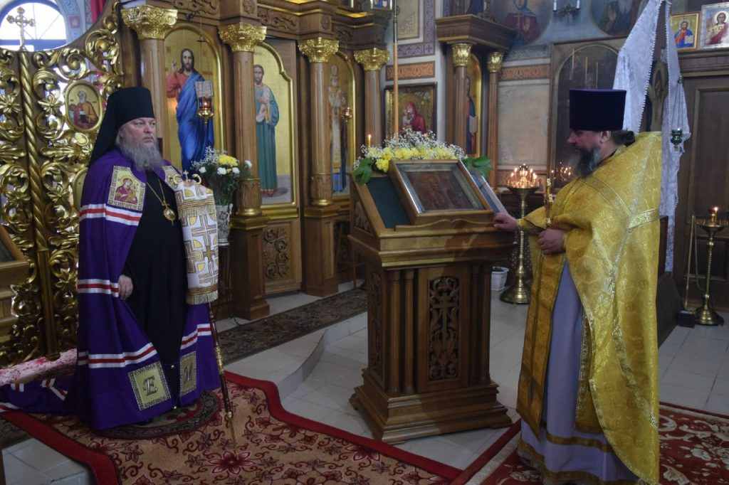 По окончании Литургии было совершено славление перед иконой святителя Николая Чудотворцф.