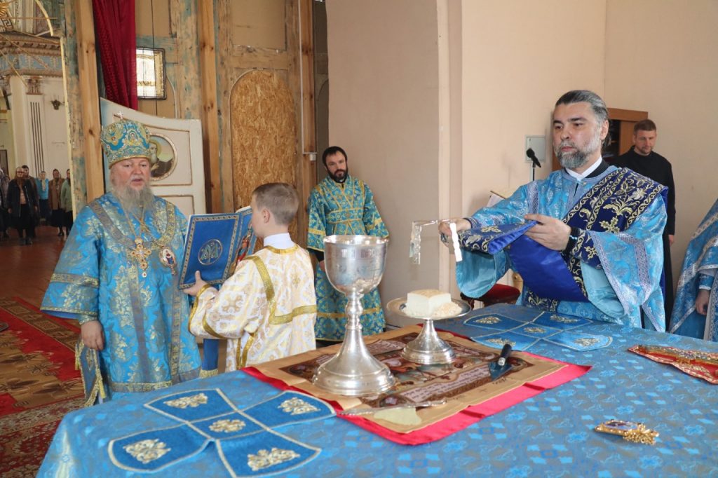Завершая богослужение, настоятель собора иерей Андрей Клопов поблагодарил епископа Митрофана за архипастырский визит и совместную молитву в день престольного праздника.