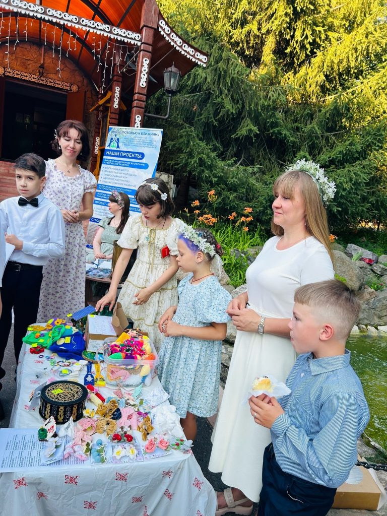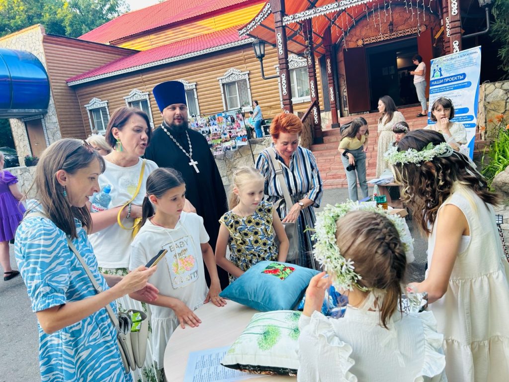 Воспитанники воскресной школы и их родители совместно с участниками проекта «Под защитой ангела» подготовили множество сюрпризов для присутствующих: благотворительная ярмарка, на которой были представлены великолепные изделия ручной работы и вкусные угощения (пирожные, блины, пирожки, подушки, вязаные изделия, поделки, картины и т.д.), сделанные руками детей и родителей; беспроигрышная лотерея, где каждый участник смог порадовать себя небольшим сувениром или сладостями.