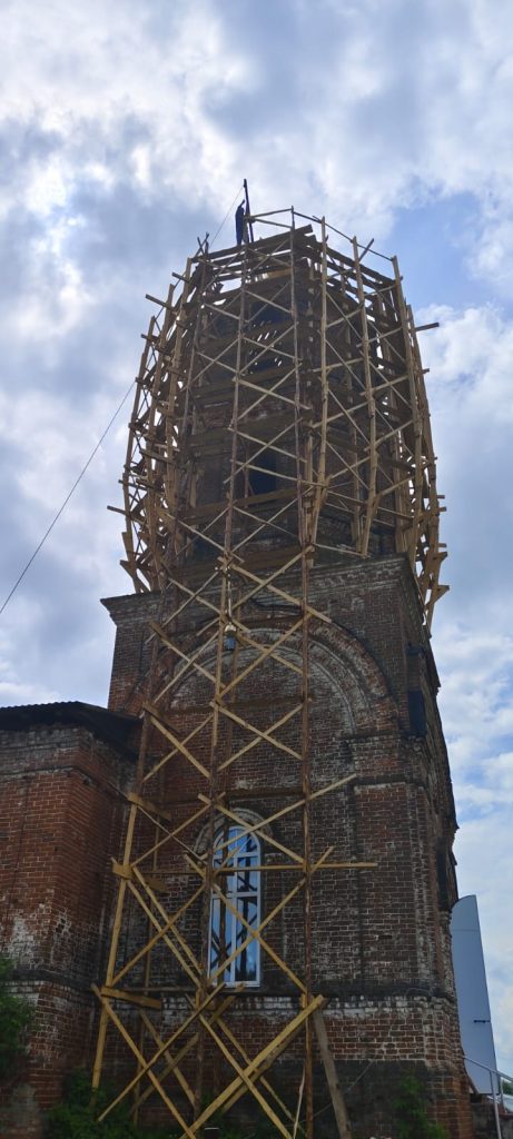 Установка освященного креста на колокольне символизирует защиту храма и верующих, а также провозглашает победу Христа над злом.