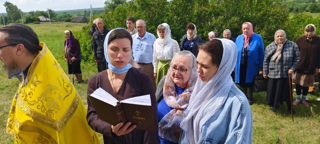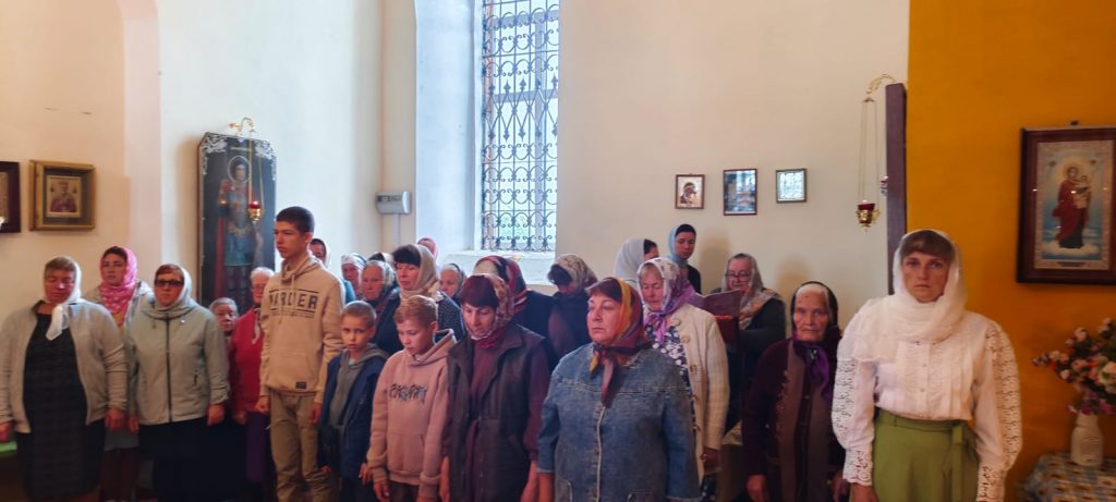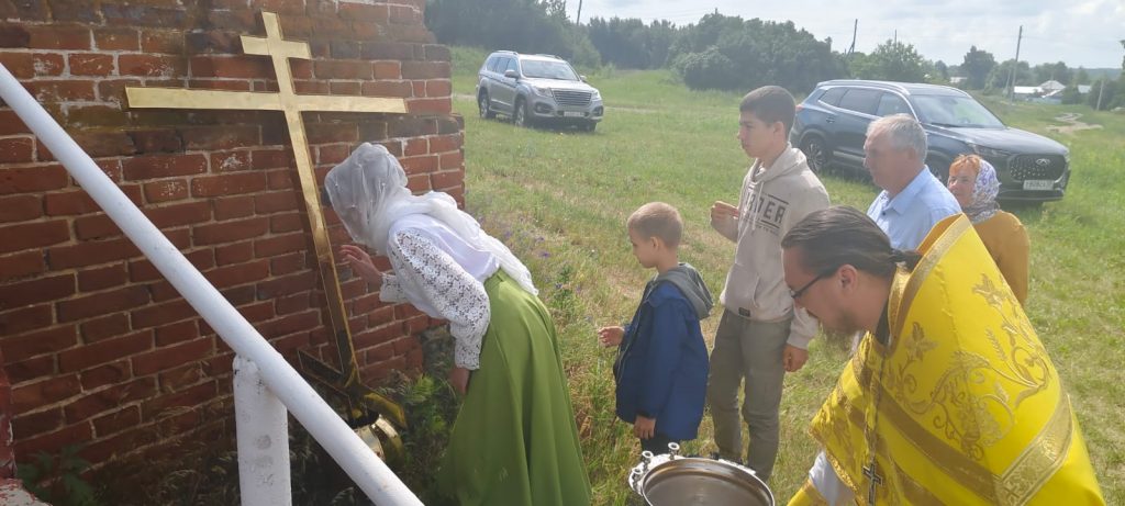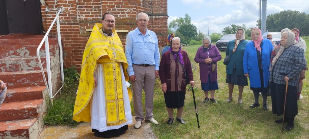 За богослужением молились меценат храма Александр Петрович Чернов, бессменная староста церкви Валентина Сергеевна Конищева, прихожане и жители села.
