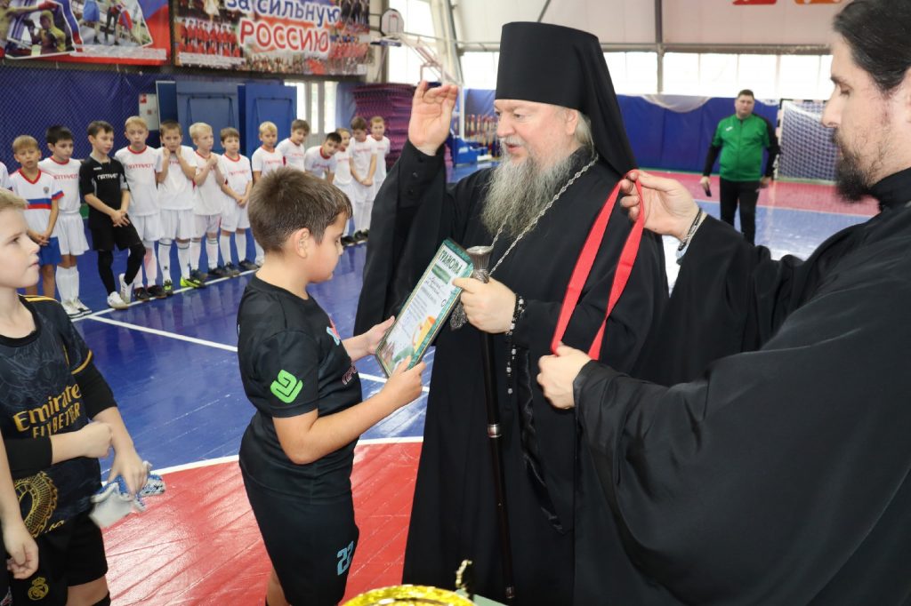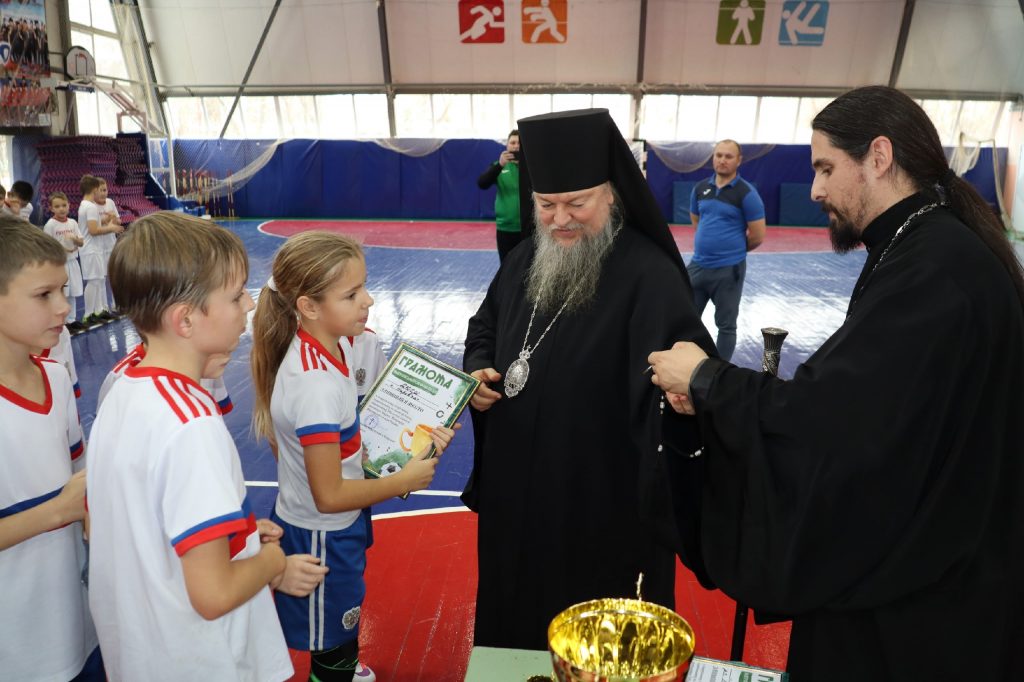 Преосвященнейший Владыка Митрофан пожелал всем игрокам побед, поблагодарил за активное участие в развитии епархиального спортивного движения и призвал их и дальше продвигать в молодежной среде здоровый образ жизни.