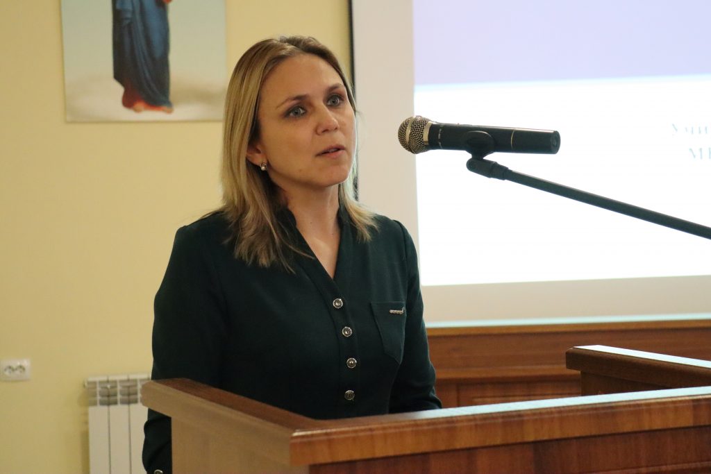 С докладом «Раскрытие духовно-нравственного потенциала младших школьников на уроках и во внеурочное время» выступила Виктория Викторовна Будряшова, учитель начальных классов МБОУ СОШ №78 им. В.А. Глазунова г.Пензы, методист отдела религиозного образования и катехизации Пензенской епархии, в котором поделилась накопленным опытом воспитания школьников младших классов общеобразовательной школы посредством применения традиций и образовательных технологий, выработанных в проекте Русская классическая школа, который базируется на трудах К.Д. Ушинского.