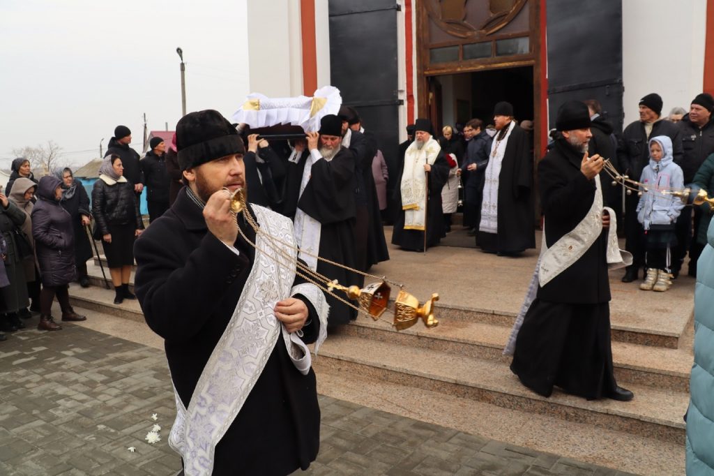 По окончании отпевания гроб с телом протоиерея Андрея Федина при пении ирмосов Великого канона был обнесен вокруг храма. Перед гробом несли хоругви, крест и Евангелие. Погребальная процессия сопровождалась колокольным звоном, создавая атмосферу глубокой скорби и почтения.