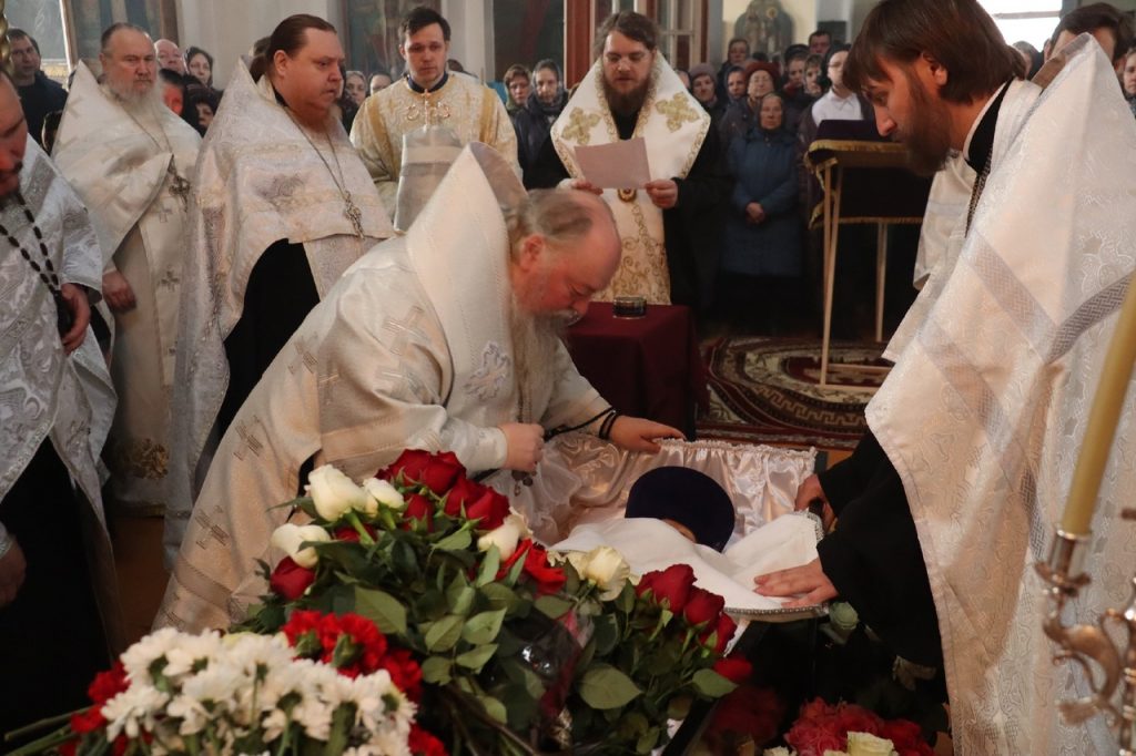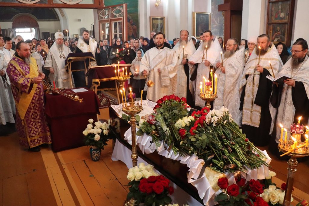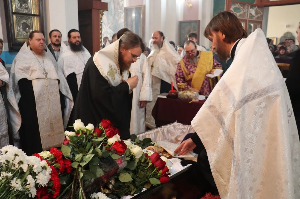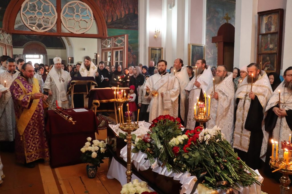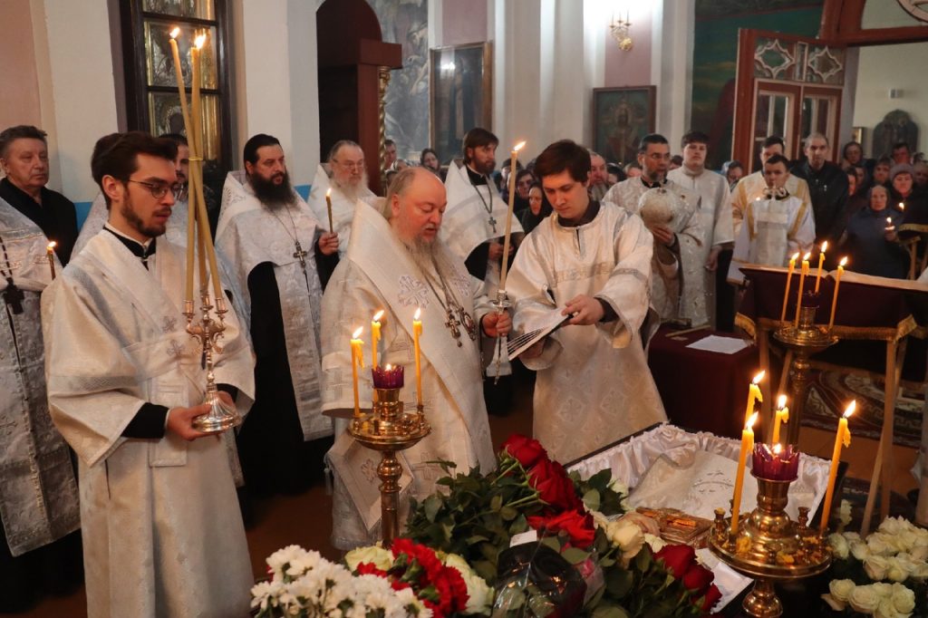 После литургии состоялось отпевание новопреставленного протоиерея Андрея Федина. Чин отпевания совершили епископ Сердобский и Спасский Митрофан и епископ Алапаевский и Ирбитский Сергий.