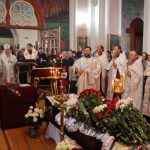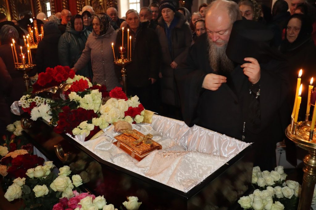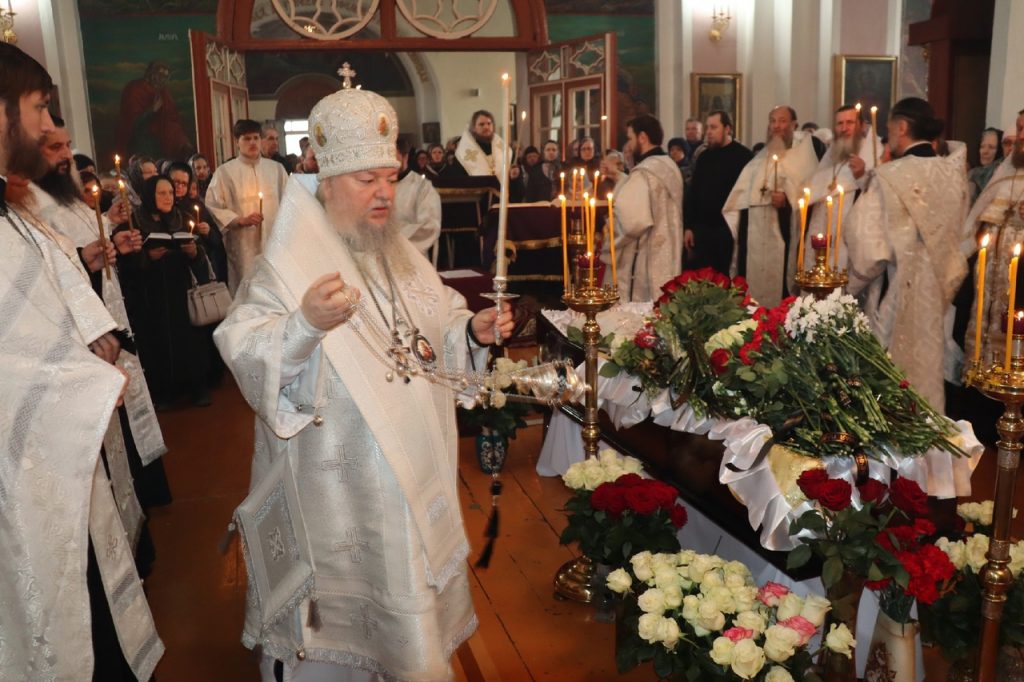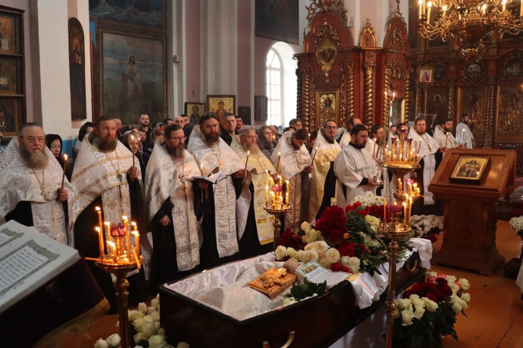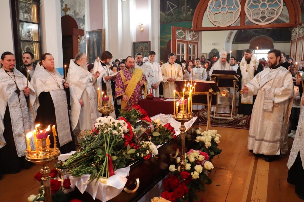 После литургии состоялось отпевание новопреставленного протоиерея Андрея Федина. Чин отпевания совершили епископ Сердобский и Спасский Митрофан и епископ Алапаевский и Ирбитский Сергий.