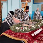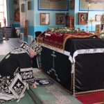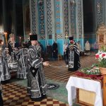 После чего священнослужители и прихожане совершили поклонение и целование Плащаницы.