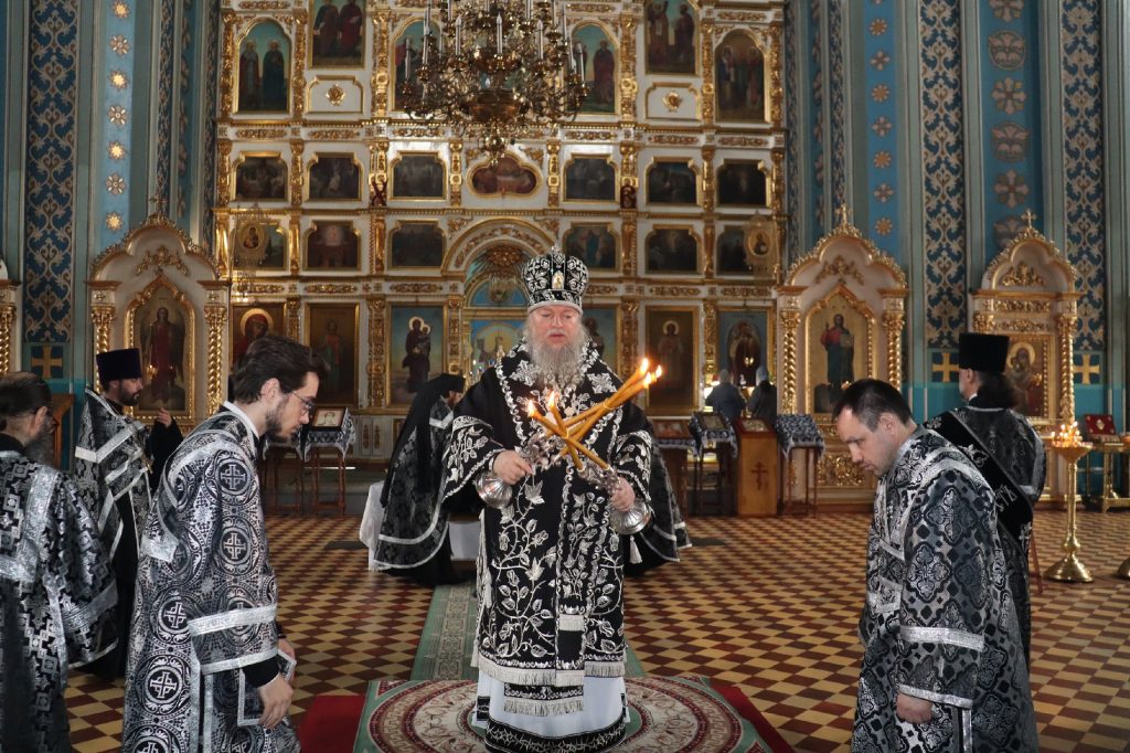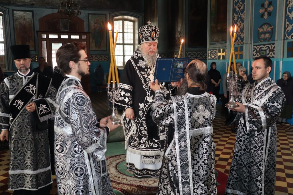 18 апреля 2025 года, в Великий Пяток, день воспоминания Святых спасительных Страстей Господа нашего Иисуса Христа, епископ Сердобский и Спасский Митрофан совершил вечерню с выносом Святой Плащаницы Спасителя в кафедральном соборе Архангела Михаила г.Сердобска.