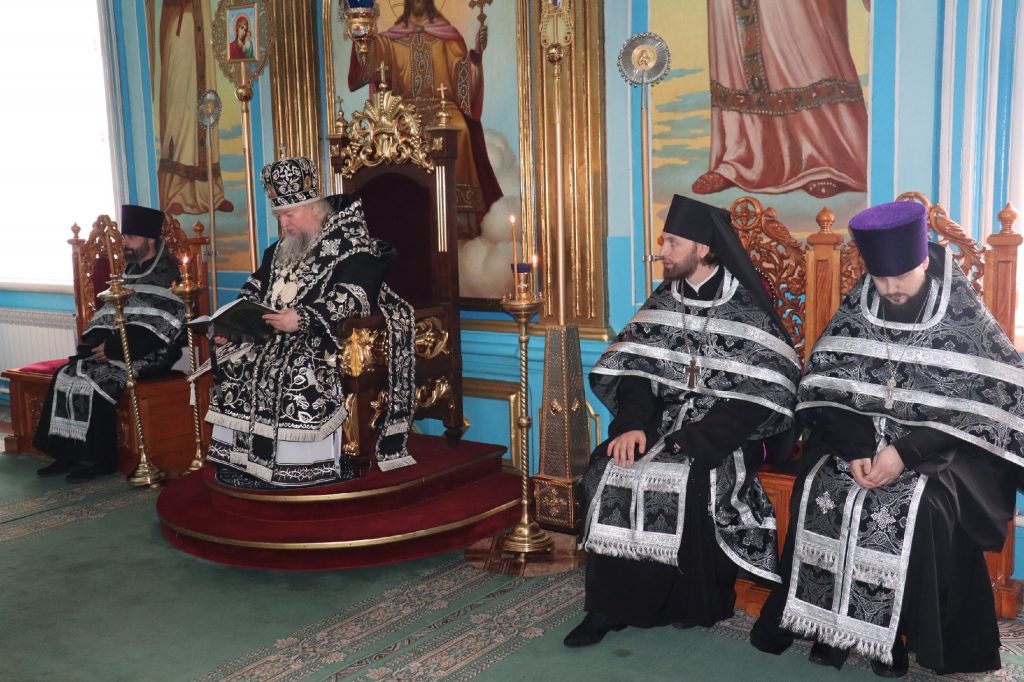 Его Преосвященству сослужили: иеромонах Амвросий (Макаров), врио. секретаря Епархиального Управления; ключарь кафедрального собора Архангела Михаила г.Сердобска, епархиальный древлехранитель иерей Роман Турецких; клирик собора и руководитель епархиального отдела религиозного образования и катехизации иерей Александр Федин; иеродиакон Иннокентий (Ганин), диакон Владимир Эрекайкин.