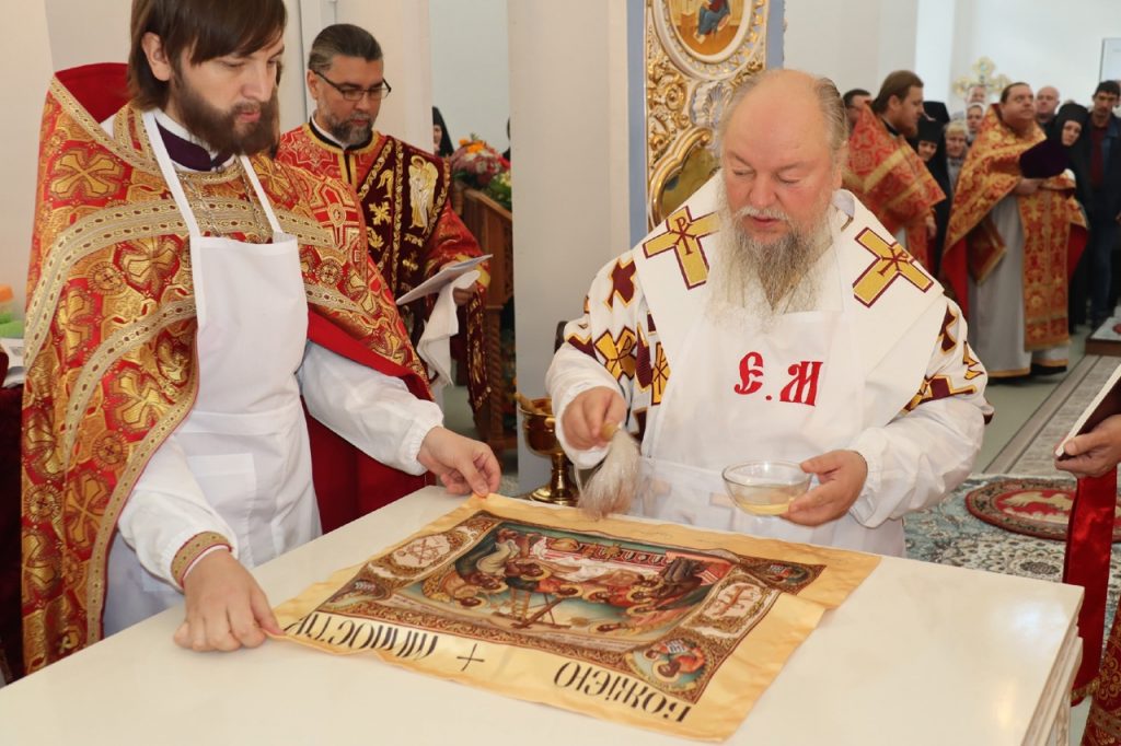 По отпусте Литургии было совершено славление перед иконой преподобномученика Пахомия Скановского и провозглашено многолетие.
