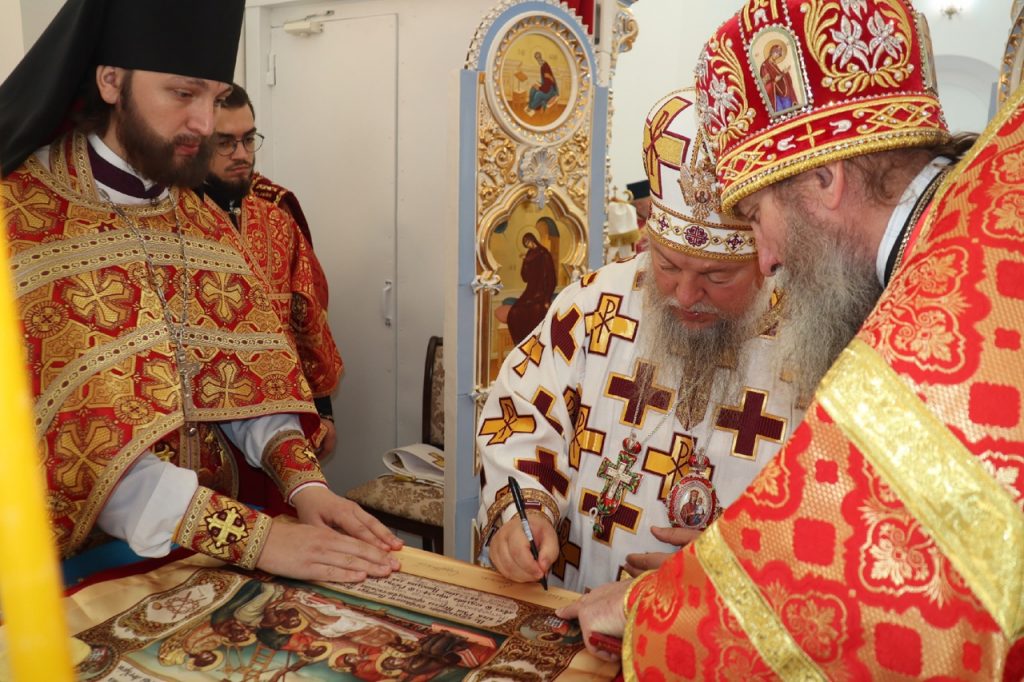 После богослужения Владыка Митрофан поздравил игумению и сестер монастыря со свершившимся историческим событием.