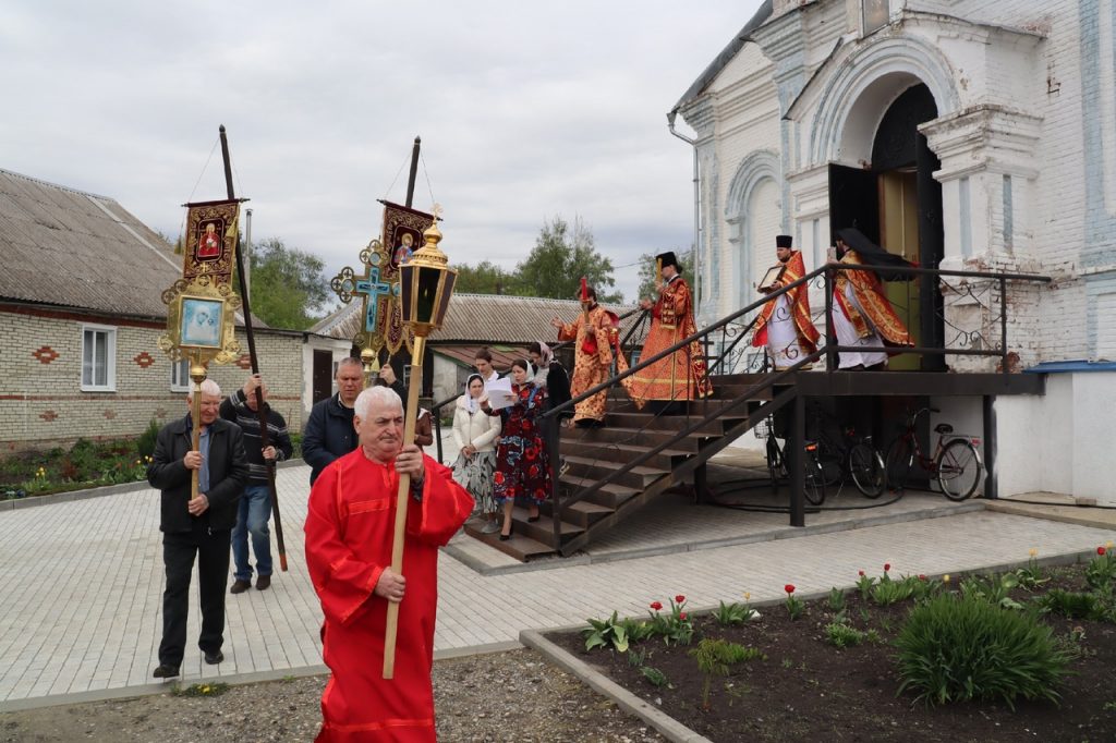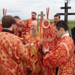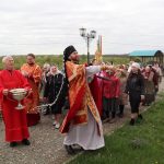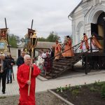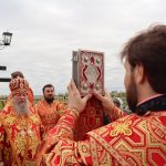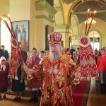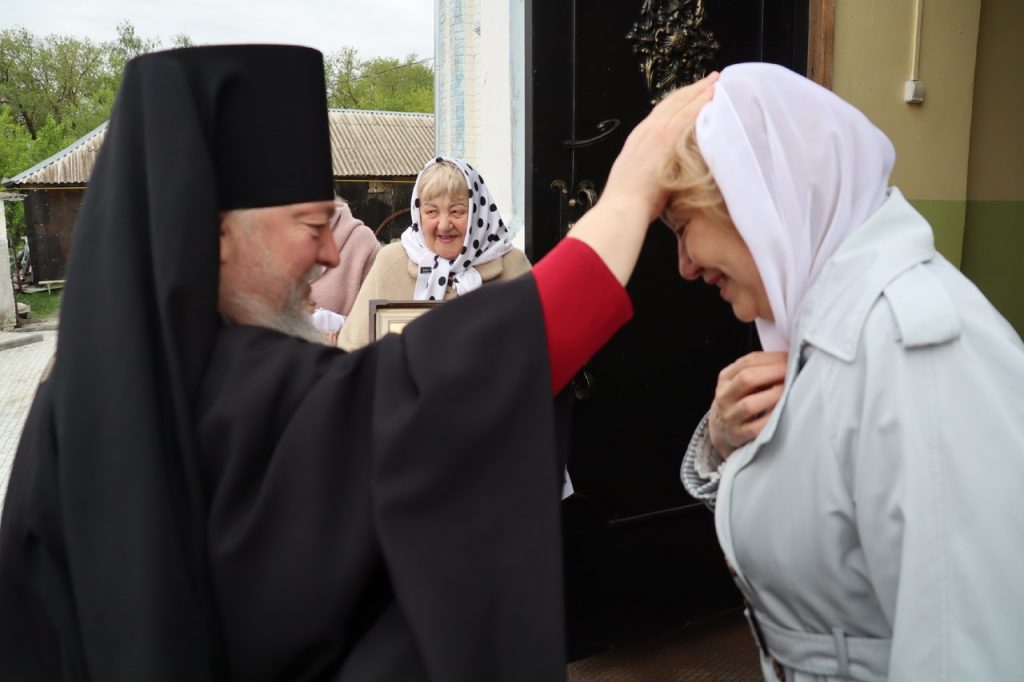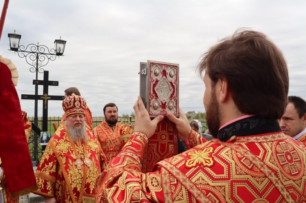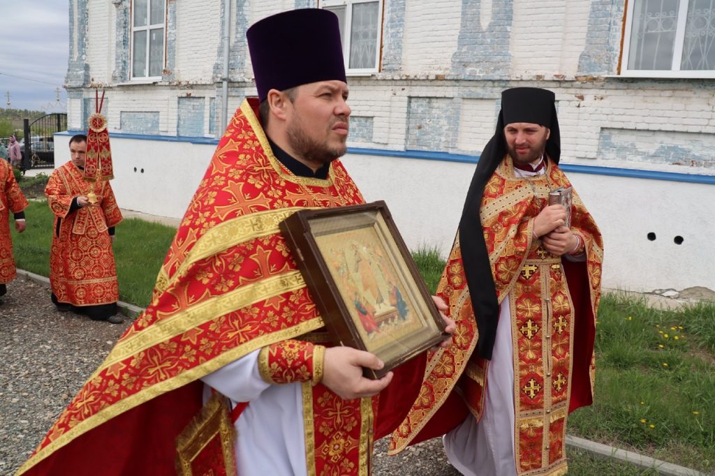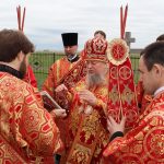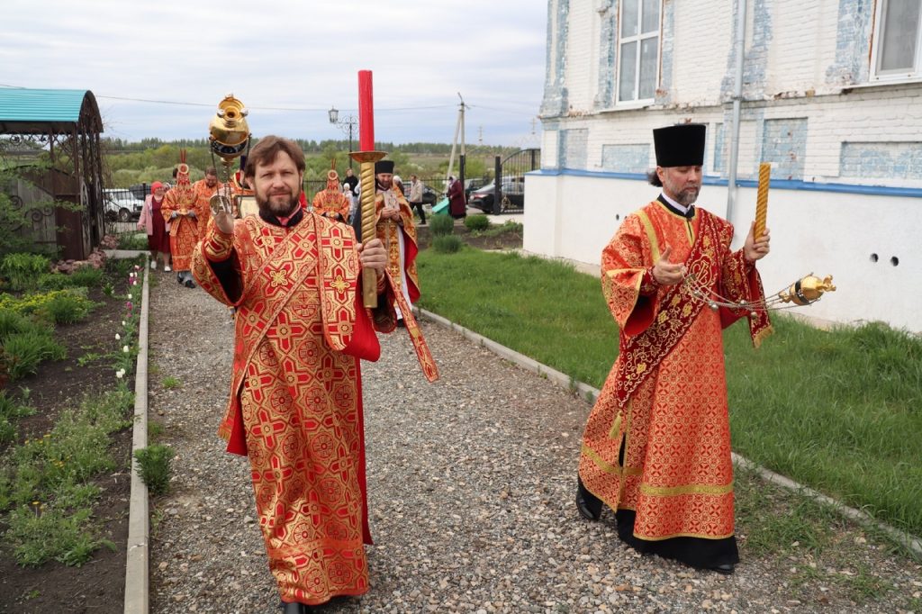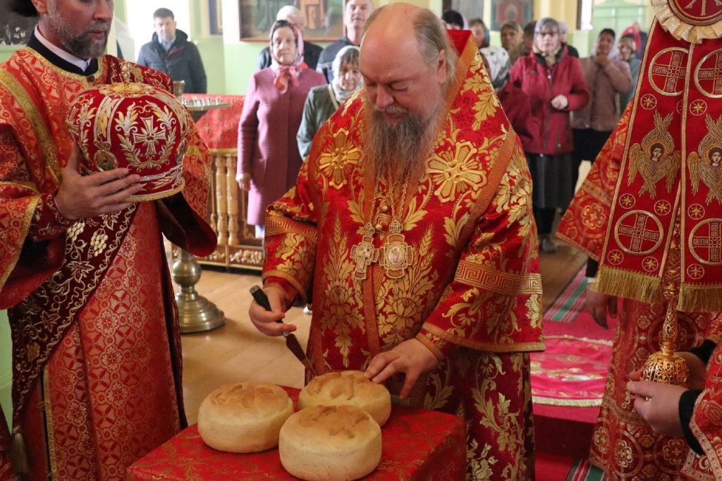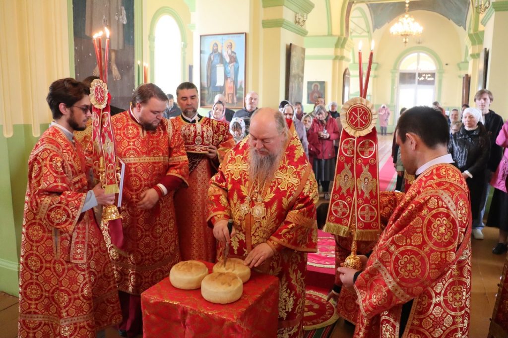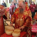 По заамвонной молитве епископ Митрофан прочитал молитву на раздробление артоса, после чего возглавил пасхальный крестный ход вокруг храма.