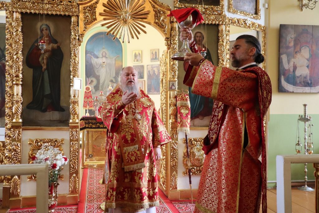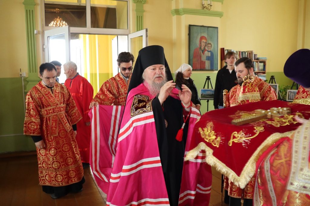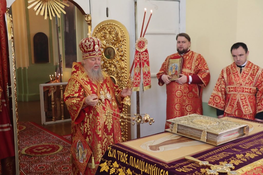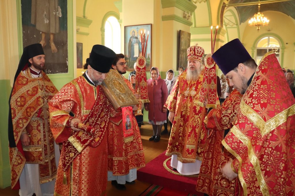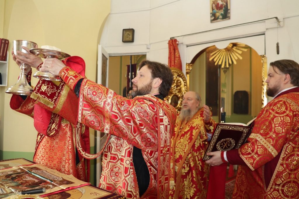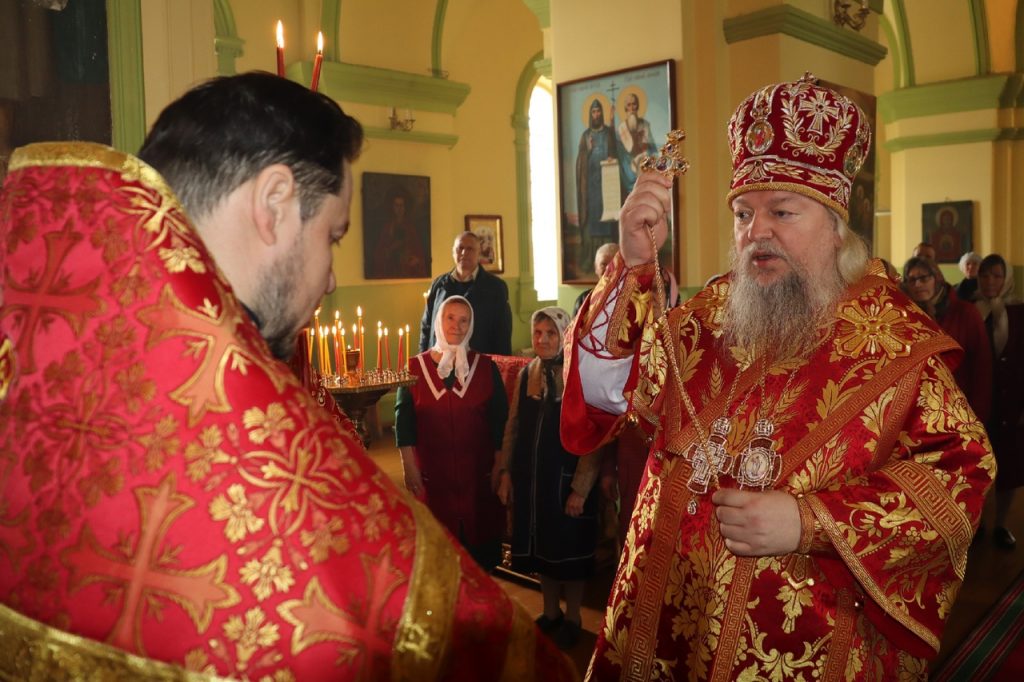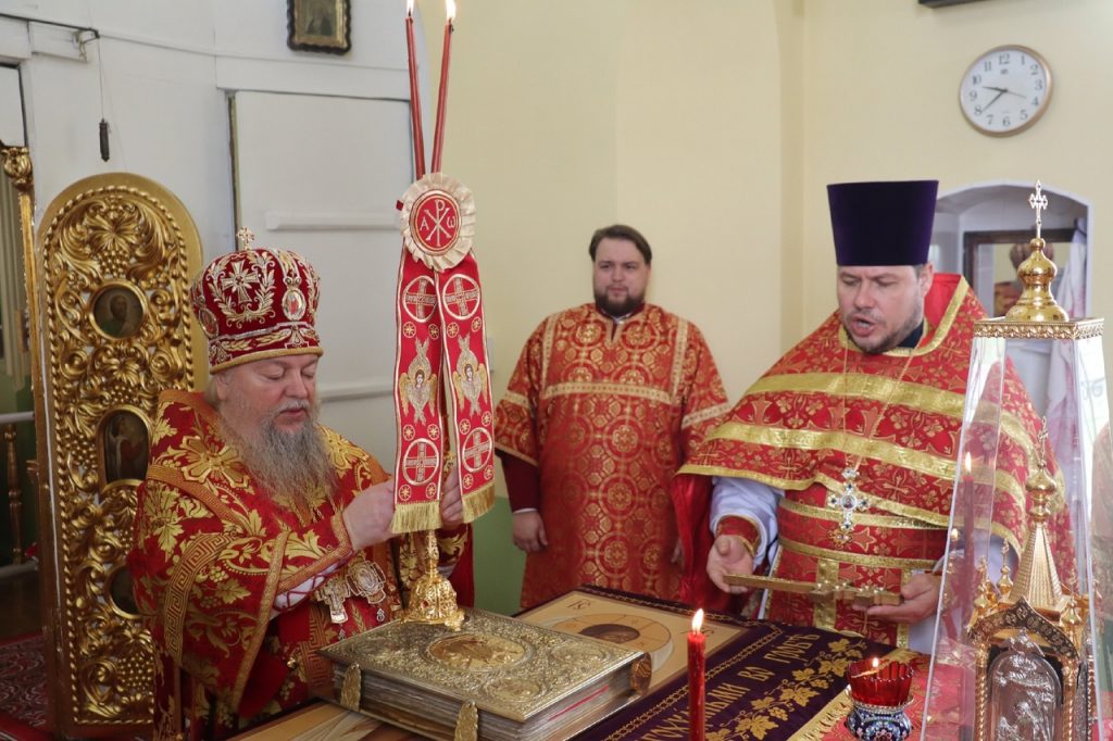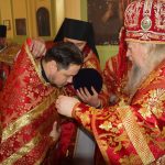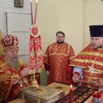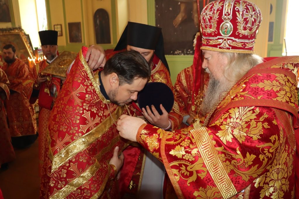 По представлению правящего архиерея в благодарность за усердные труды на благо Церкви настоятель храма протоиерей Сергий Козлов удостоен очередной богослужебно-иерархической награды – права ношения Креста с украшениями. На малом входе Божественной литургии Преосвященнейший Владыка Митрофан возложил на протоиерея Сергия Козлова наперсный крест с украшениями.