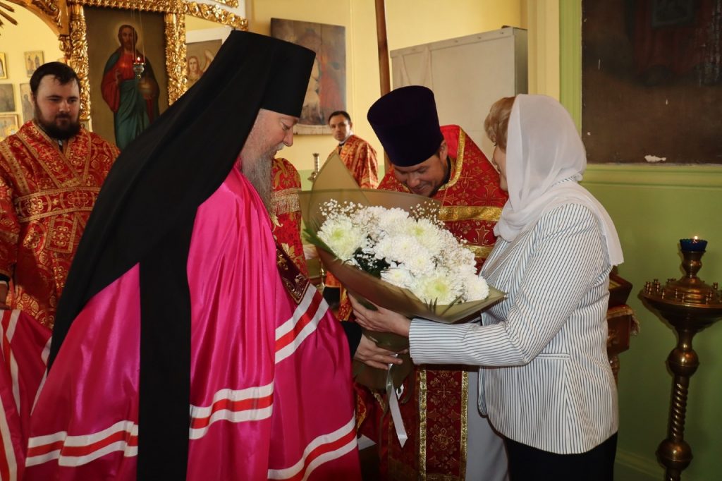 По окончании богослужения епископа Митрофана с праздником поздравила Глава Башмаковского района Т.А. Павлуткина.