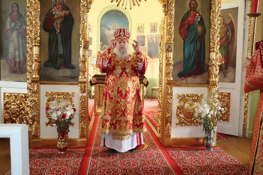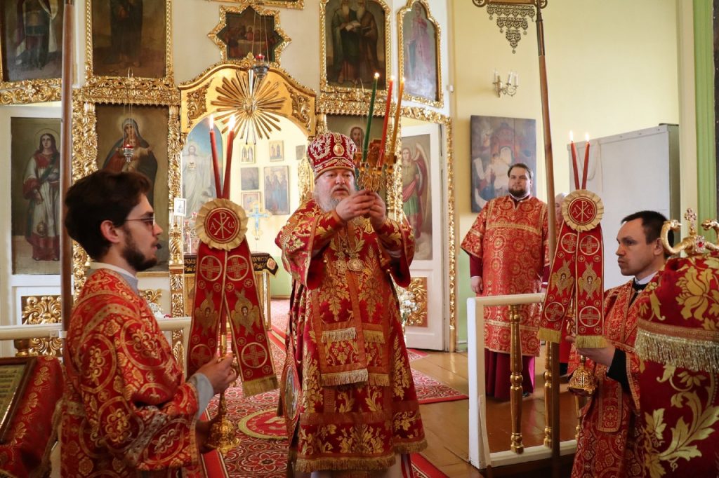 Завершая богослужение, правящий архипастырь обратился к собравшимся со словами проповеди, в которой поздравил верующих с праздником Воскресения Христова.