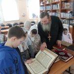 В классе была организована книжная выставка-просмотр «Через книгу к духовности», посвященная православной литературе. Центральной цитатой выставки стали слова старца Макария Оптинского: «Чтение духовных книг просвещает разум и указывает путь к спасению, питает душу так же, как физическая пища питает тело».